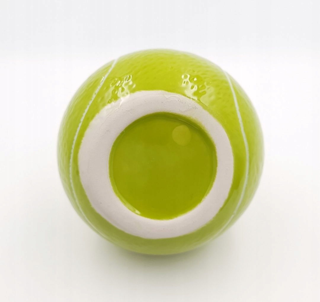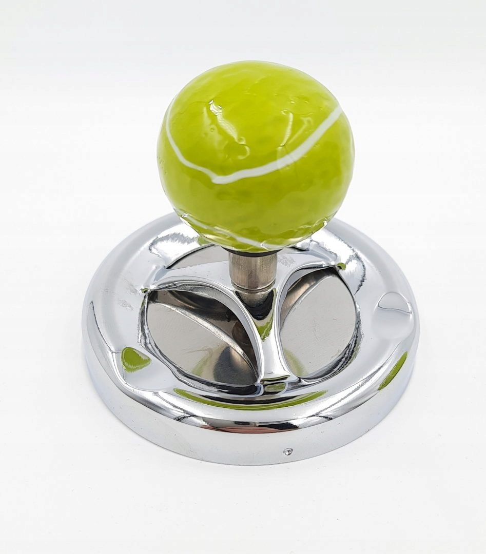 Предложение распространяется на пепельницу в форме теннисного мяча. Он изготовлен из керамики и металла. Эш падает внутрь, когда вы нажимаете кнопку. Металлическая пластина опускается и вращается, бросая ее внутрь. Размеры пепельницы 13,5х10 см. Идеально подходит для любителей тенниса.