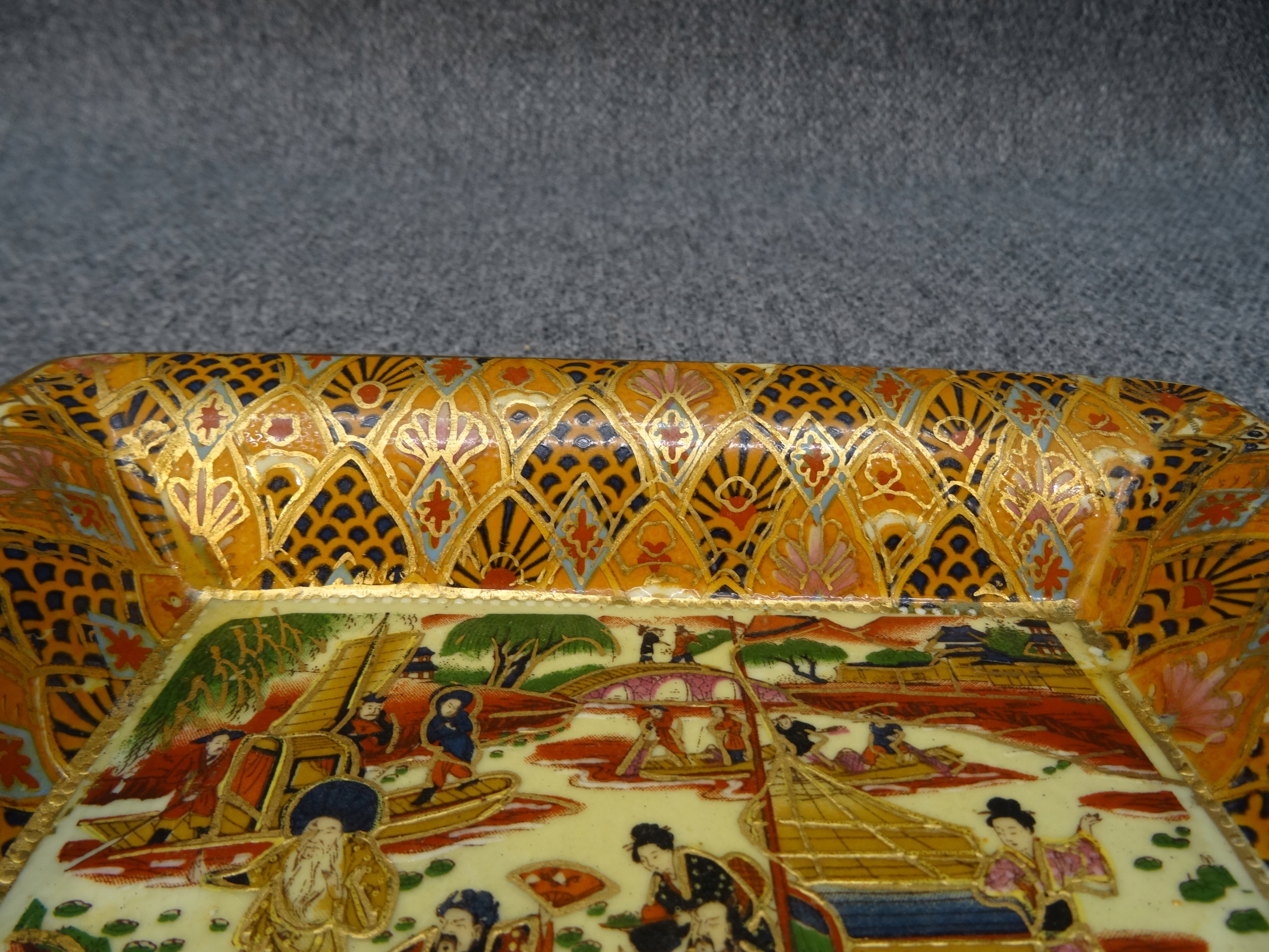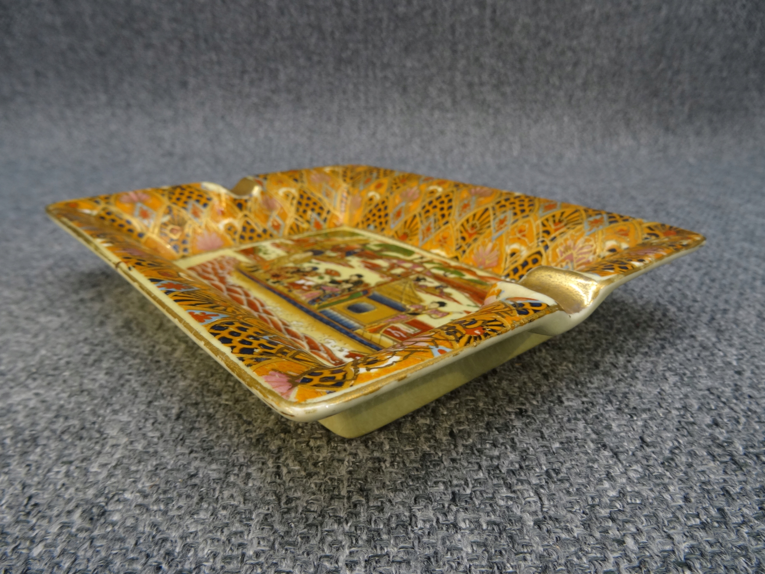 Пепельница, расписанная вручную с жанровой сценой из Японии. Производство Китай.