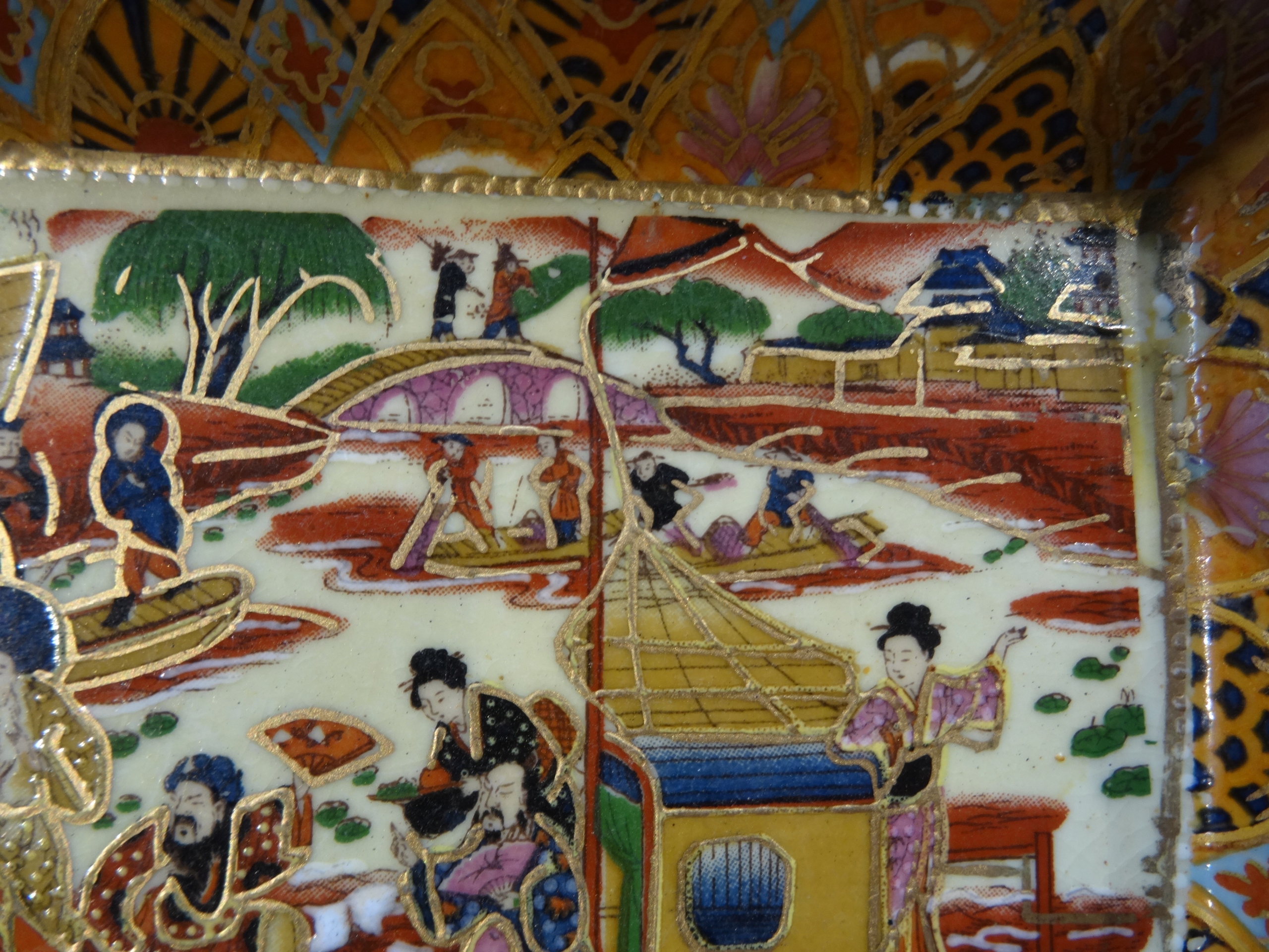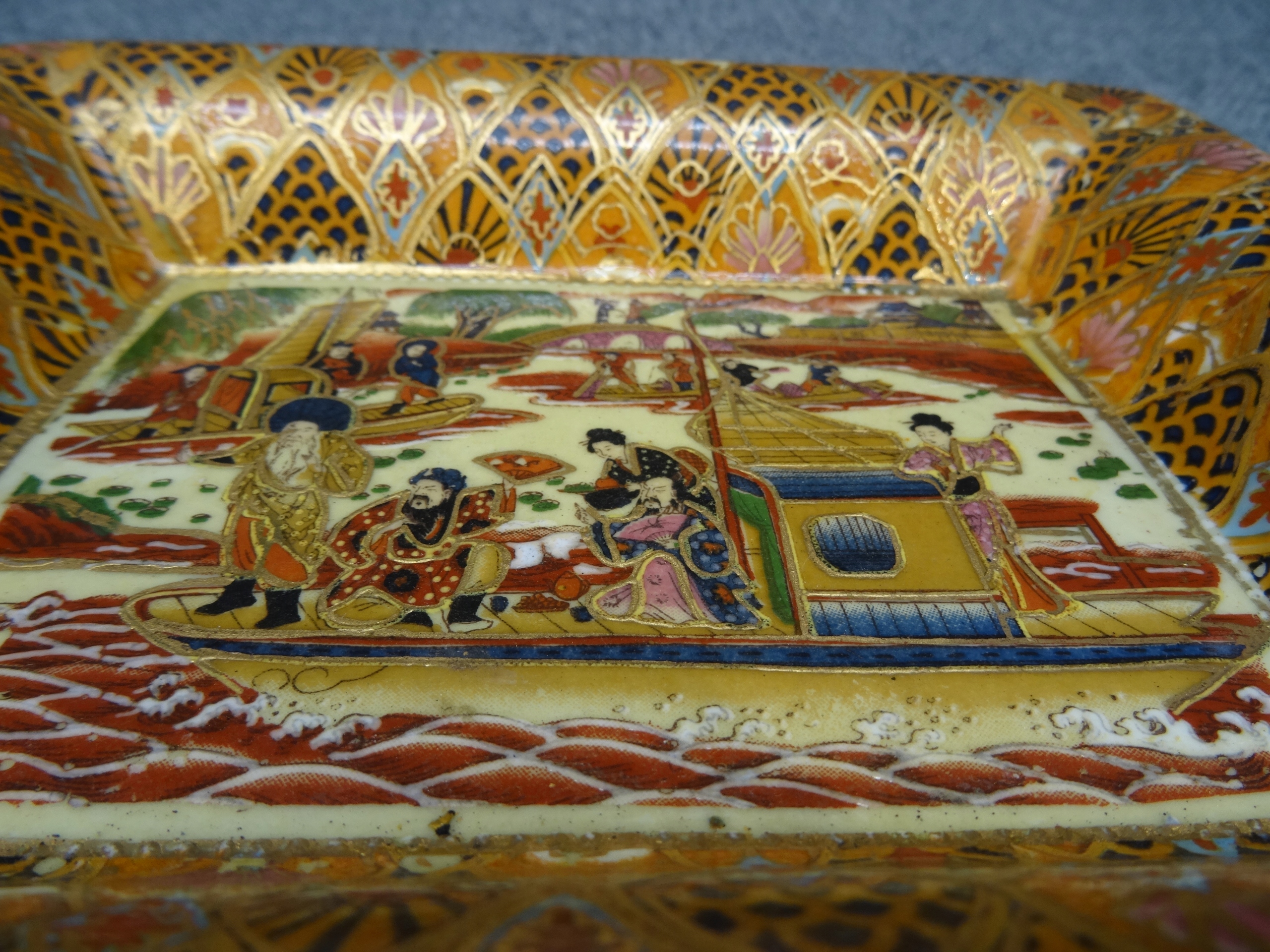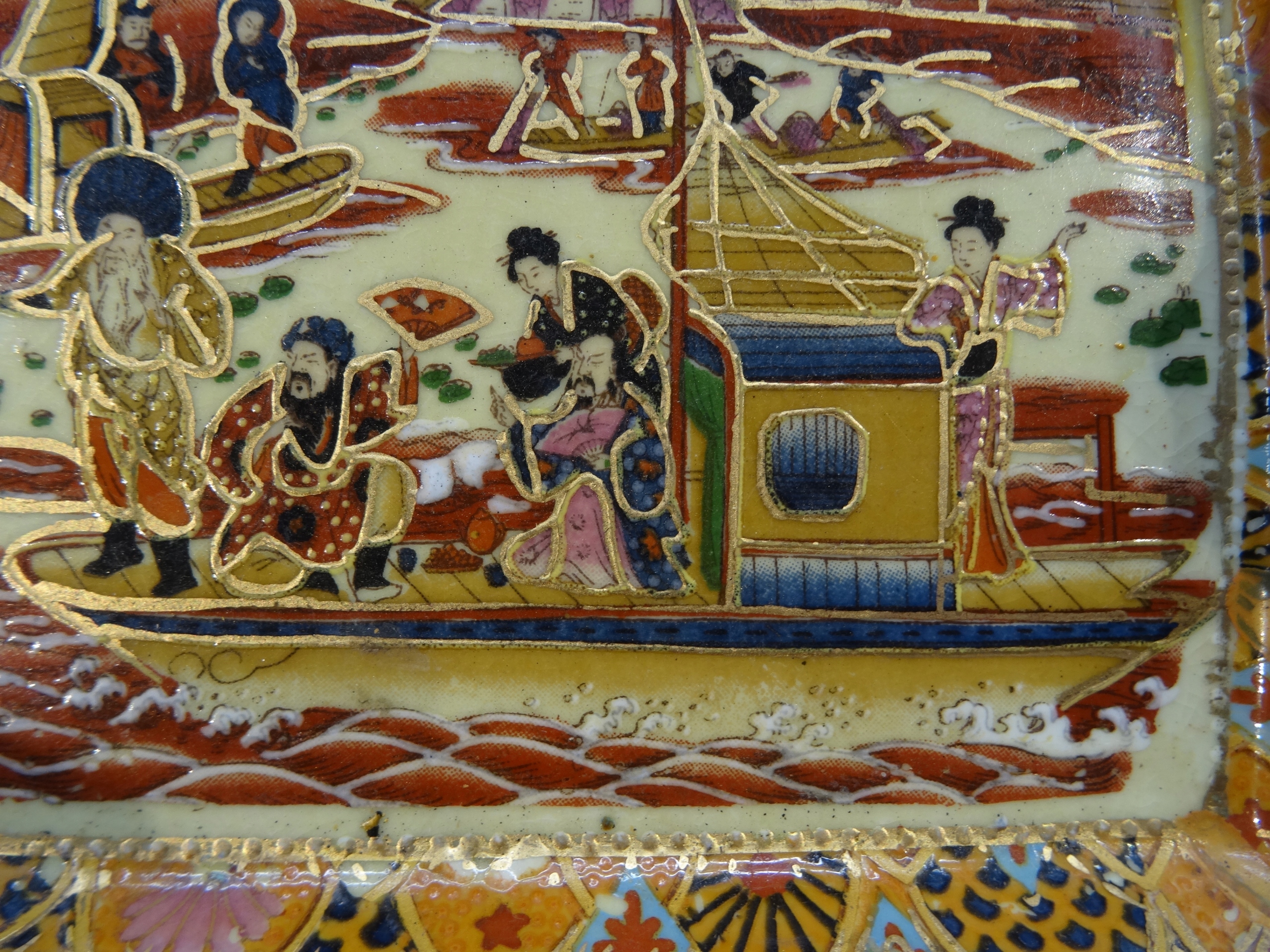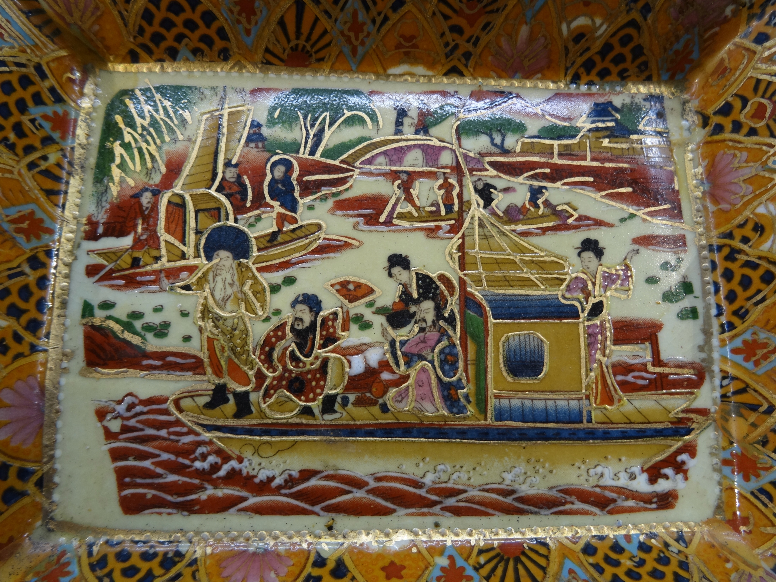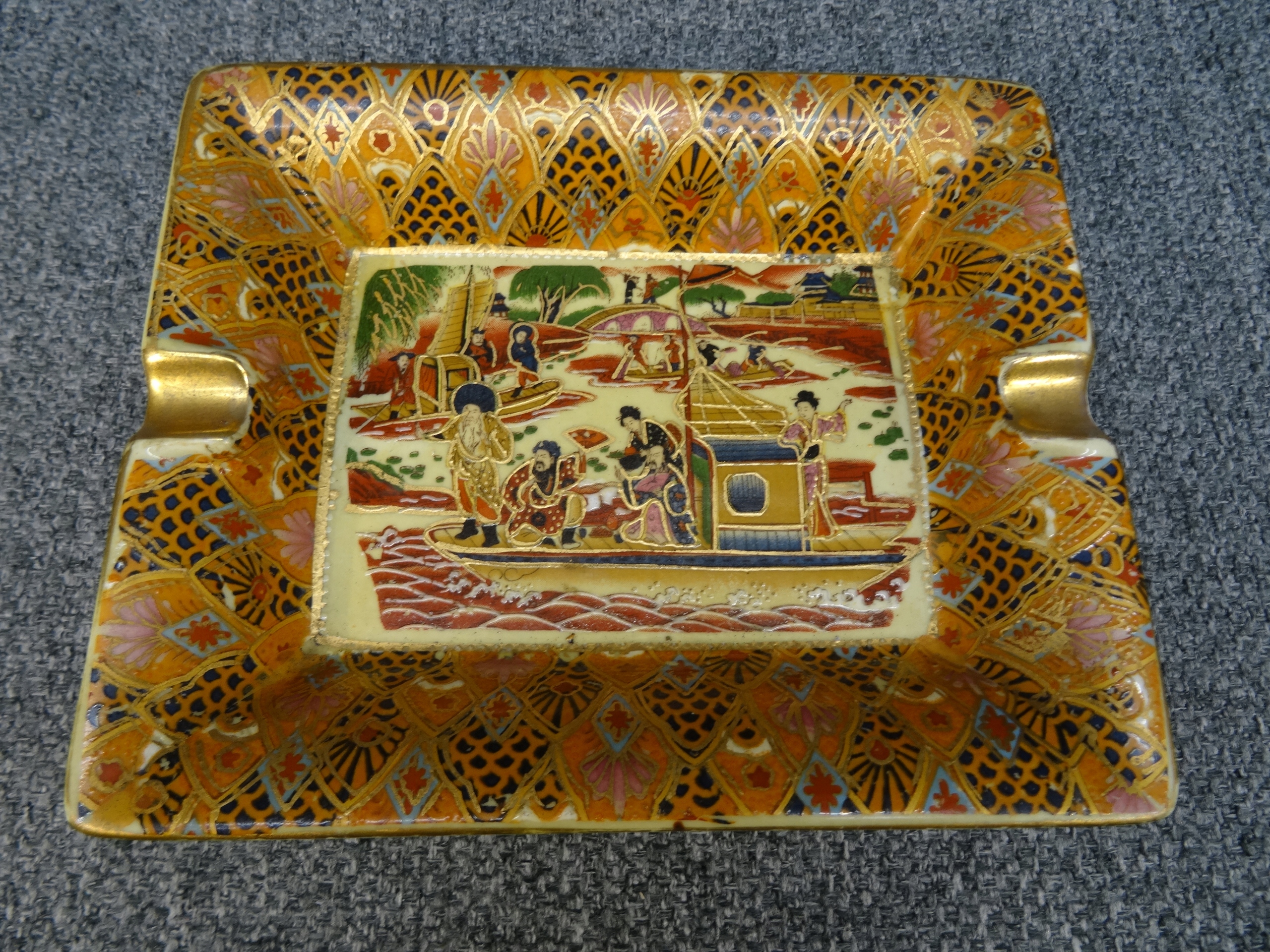 Попільничка з жанровою сценою японського човна, розписана вручну