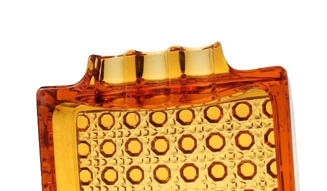 Пепельница на шесть сигарет, прессованное янтарное стекло. Происхождение неизвестно. 2-я половина XX век