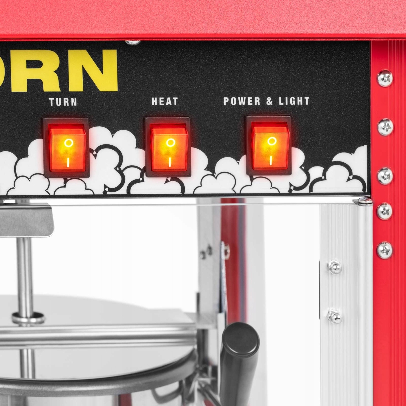 С помощью машины для попкорна Royal Catering вы можете производить до 6 кг или 16 литров попкорна в час. Это обеспечивается эффективным нагревательным элементом мощностью 1500 Вт в сочетании с автоматическим термостатом и высококлассным нагревательным элементом, быстро достигающим рабочей температуры. Первую порцию закуски вы подадите уже через 2 минуты после включения попкорн-аппарата. Высыпав кукурузу из кастрюли, она надолго останется свежей и хрустящей благодаря функции поддержания тепла. Благодаря встроенной подсветке и ярко-красному корпусу вы представите свой продукт эффектно и привлекательно.