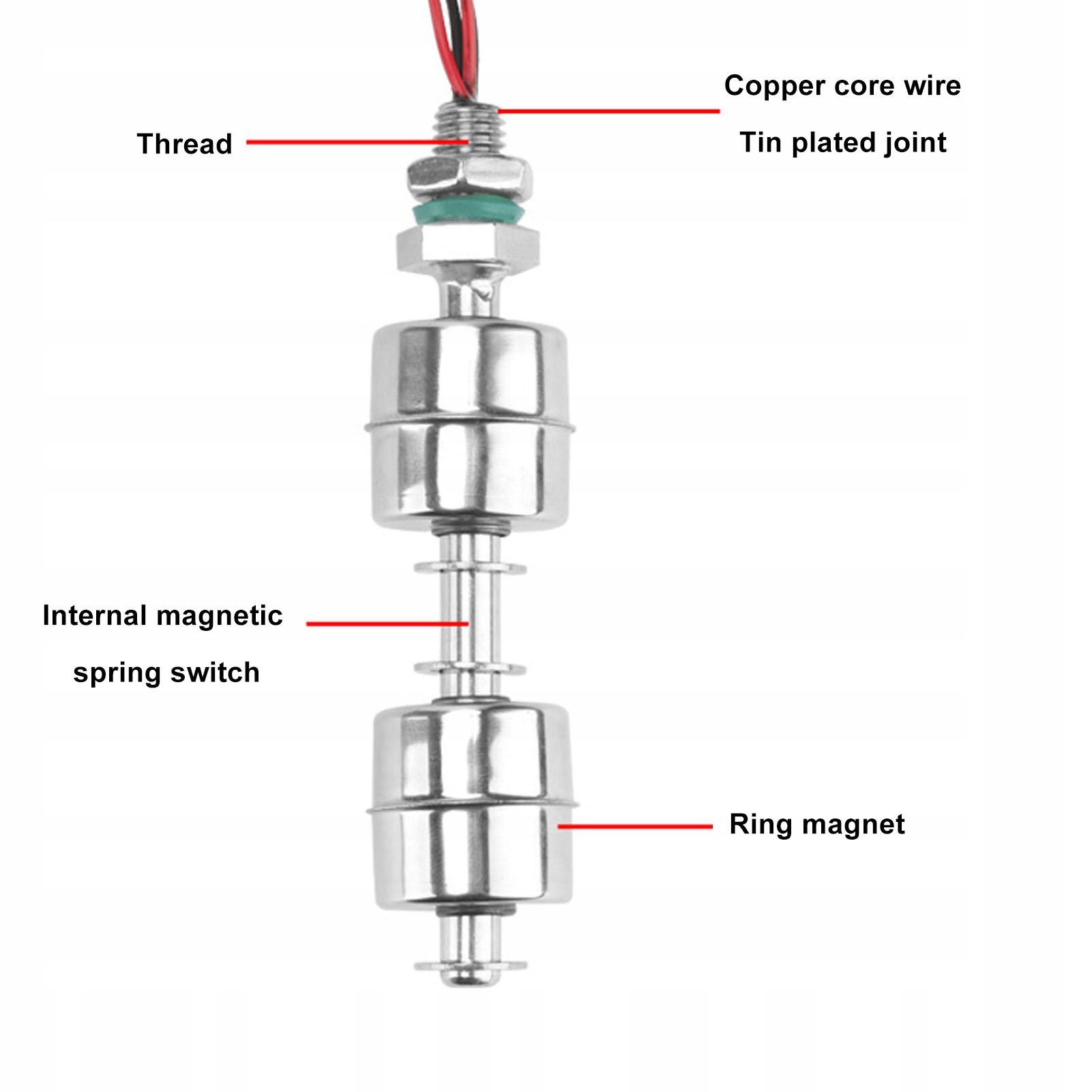 1 、 [пловец с двойным шаром] Этот переключатель пловца использует два шара для управления уровнем жидкости, диапазон движения двух пловцов составляет 10 мм. Когда требуется больший диапазон регулировки, можно подключить два разъема пловца, чтобы получить больший прыжок, предотвращая чрезмерные циклы насосов. 2. [корпус из нержавеющей стали] Датчик уровня воды с пловцом имеет твердый корпус из нержавеющей стали 304, устойчивый к ржавчине и коррозии, обеспечивая долговечность даже в требовательных условиях. 3, [высокая чувствительность] Этот переключатель уровня воды с пловцом обеспечивает исключительную чувствительность, тщательно обнаруживая уровень жидкости и обеспечивая надежный контроль и действие. 4. 5 、 [Широкое применение] Двойное плавание с двойным шариком можно использовать для управления уровнем жидкости в водохранилищах, бассейнах, раковинах, аквариумах и не только, или служить выключателем тревоги для подъема и снижения уровней жидкости.