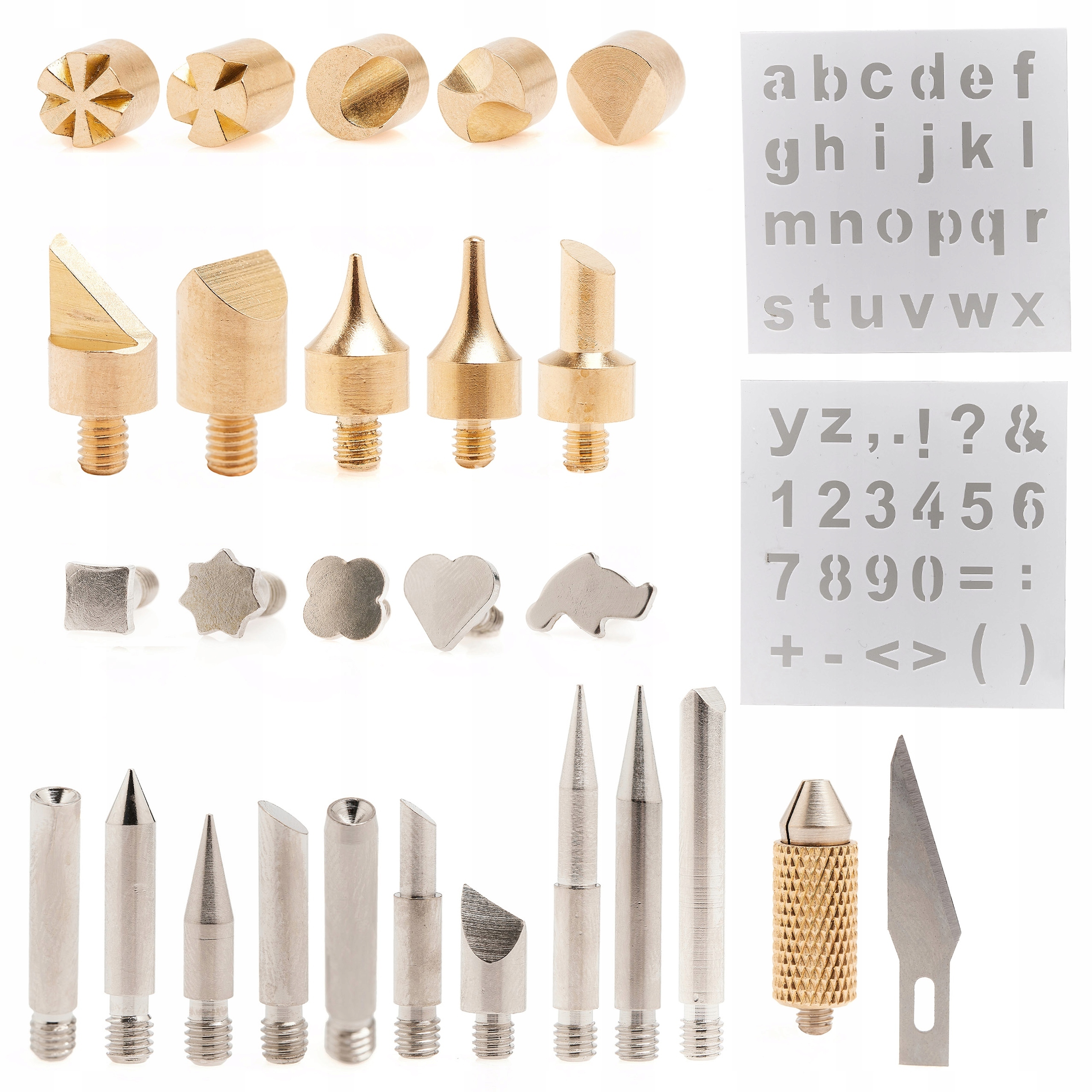 ⚡С помощью этого набора вы сможете создать бесчисленное количество работ, вы ограничены только вашей фантазией, в вашем распоряжении 25 насадок для выжигания по дереву, включая различные виды штампов , наконечники разного диаметра и профиля, с помощью которых вы сможете придать своей работе характерный стиль.