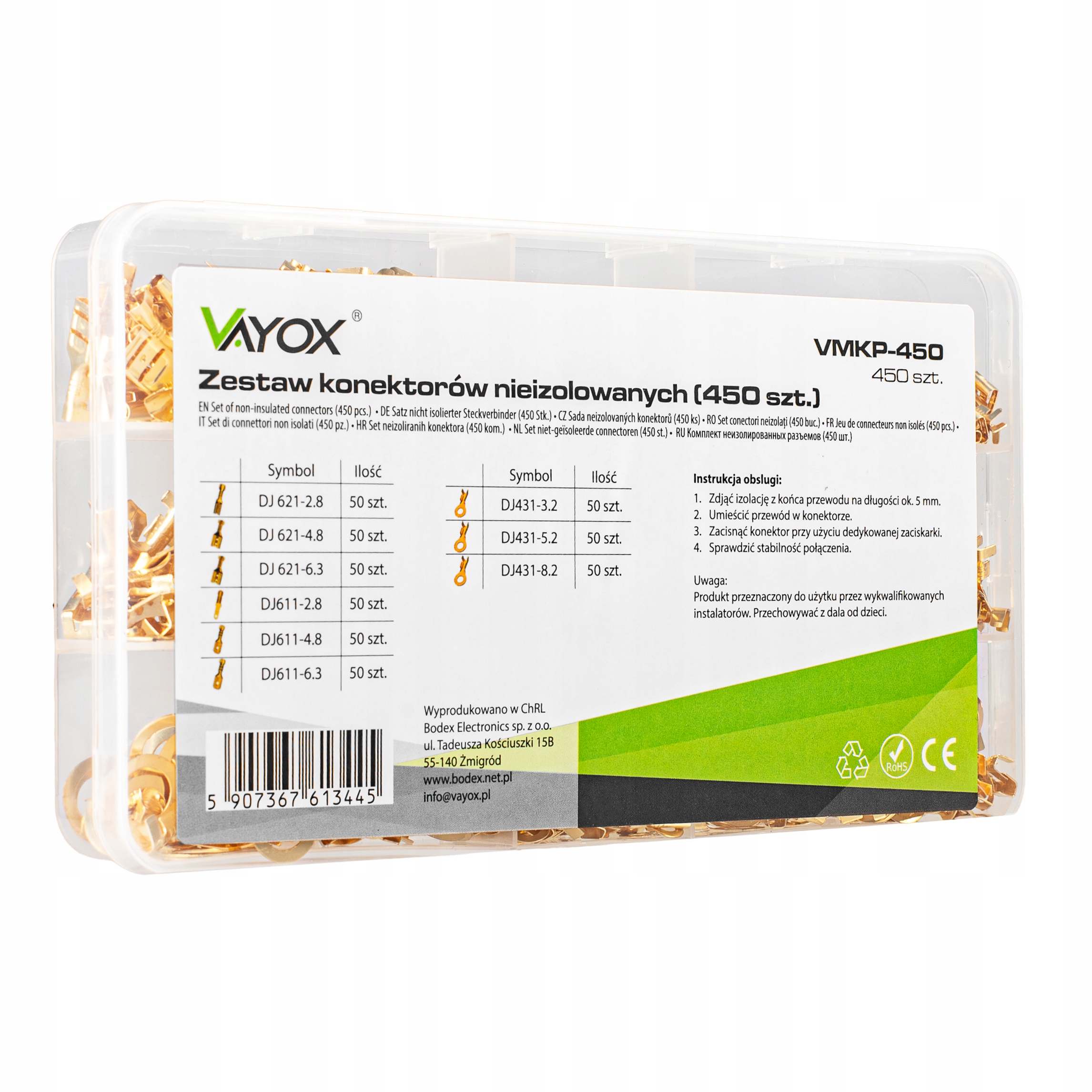 Продукт доставляется в практической , прозрачной коробке с отдельными отсеками для каждого размера разъемов и с твердым закрытием. это значительно облегчает хранение и транспорт и позволяет вам сохранять заказ на рабочем месте.