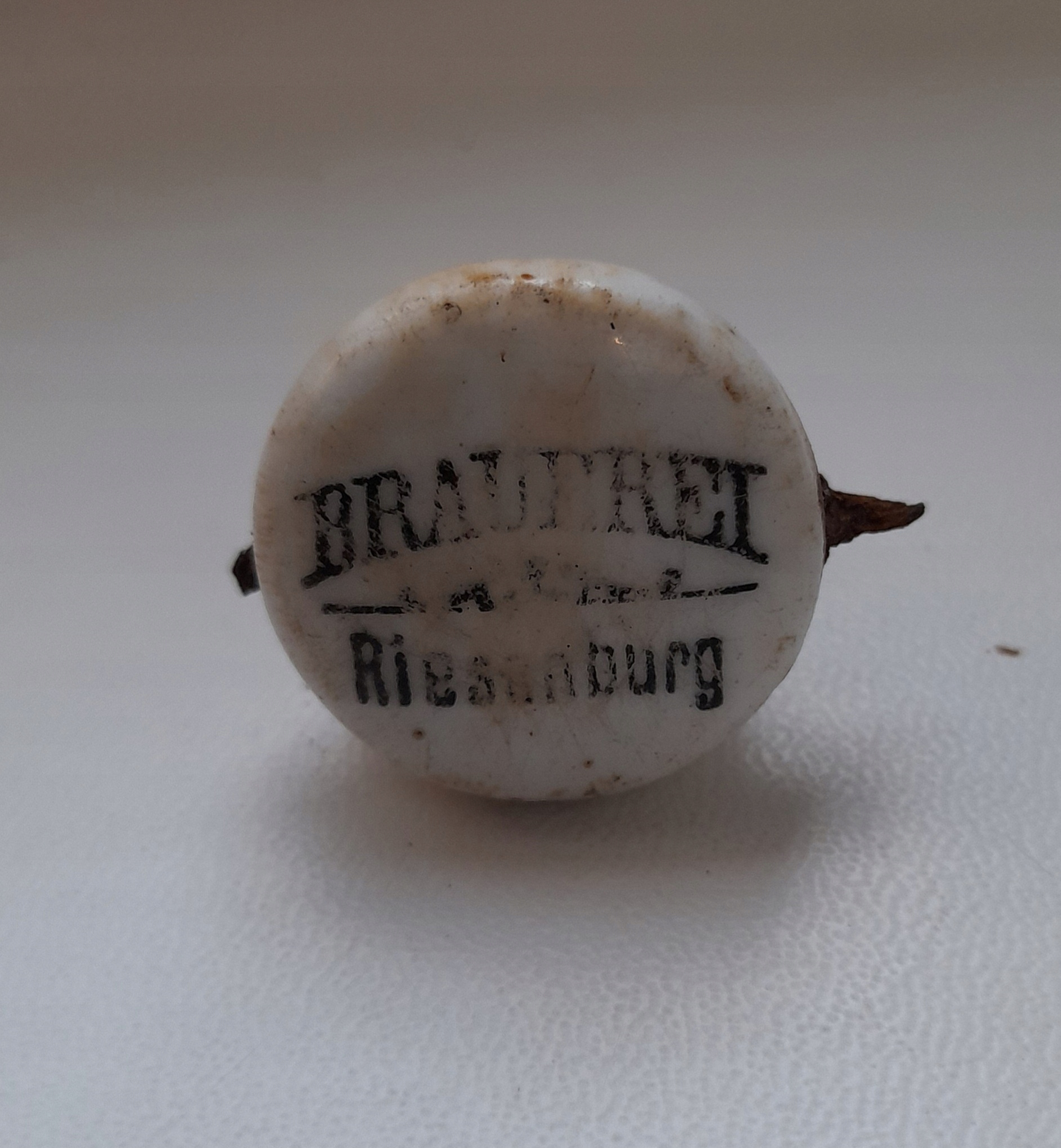 Оригинальный фарфор Brauerei Riesenburg Prabuty. Фарфор от пивоварни, пивоварня существовала в годы: с 1895 по 1905 год. Состояние как на фото, дырка с остатками проволоки.