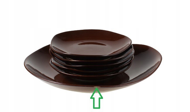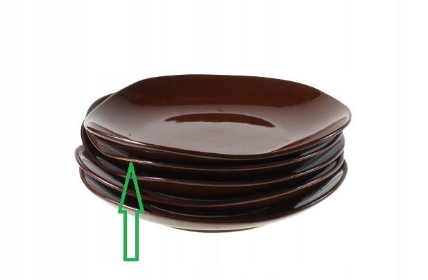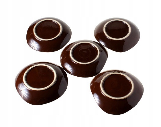 Фарфоровый набор десертных тарелок «Рышард» (1 большая тарелка и 5 маленьких). Окрашен в коричневый цвет. Разработан в 1960-х годах. Габриэла Слежевска-Хоффман. Он производится на Фарфоровом заводе столовой посуды «Прушков» в Прушкуве.