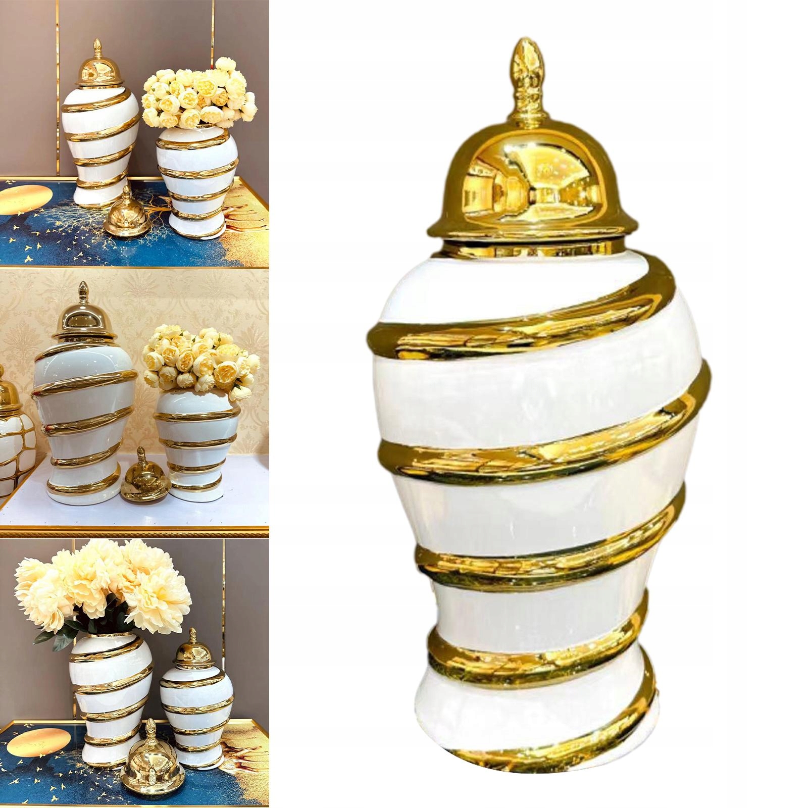 [Керамическая имбирная банка]: высококачественный керамический материал, легкий и прочный, изысканные, окрашенные в золотые полосы, изысканные, прекрасно выполненные произведения искусства, которые украсят ваш дом, гостиную.