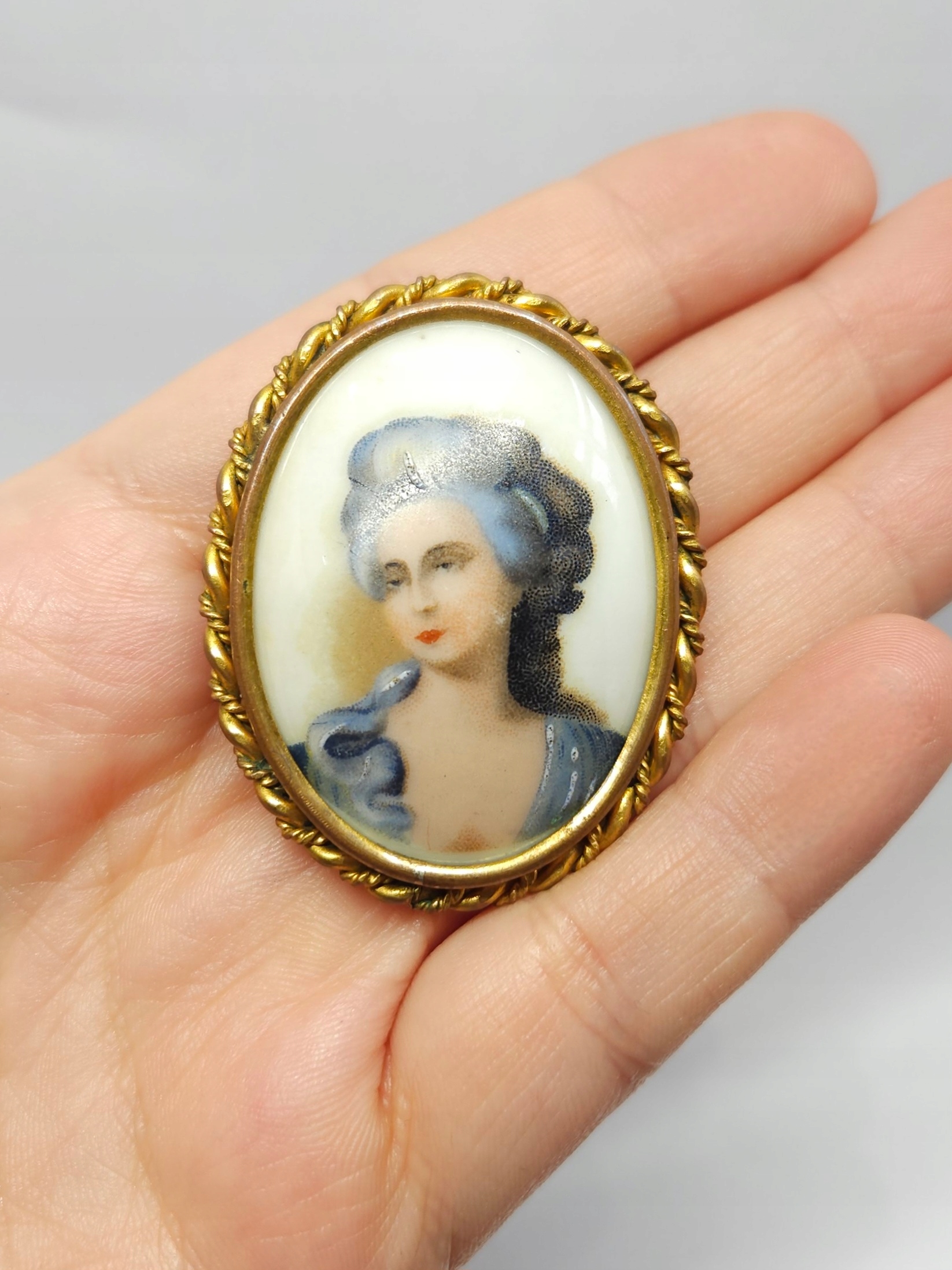 Фарфоровая брошь, Лимож, медь, латунь, бюст женщины II