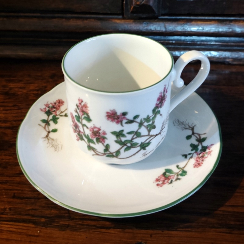 Предмет аукциона – чашка с блюдцем. Состояние фарфора очень хорошее, повреждений нет. Комплект восхищает очаровательными цветами, дизайном и утонченной формой.