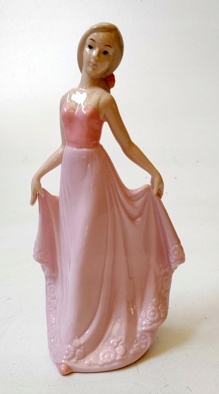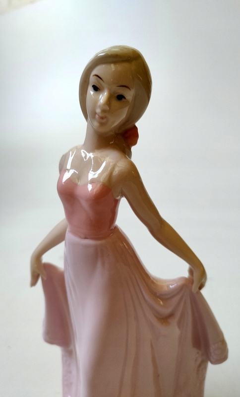 Фарфоровая фигурка танцовщицы, изготовленная в наши дни с сохранением старинных ремесленных приемов. На нем изображена танцовщица во всей ее красе во время танца. В неподвижной скульптуре художник запечатлел динамику движения, легкость струящегося платья и грацию танцовщицы. Кроме того, цвета и одежда создают атмосферу красоты, изящества и художественного чутья.