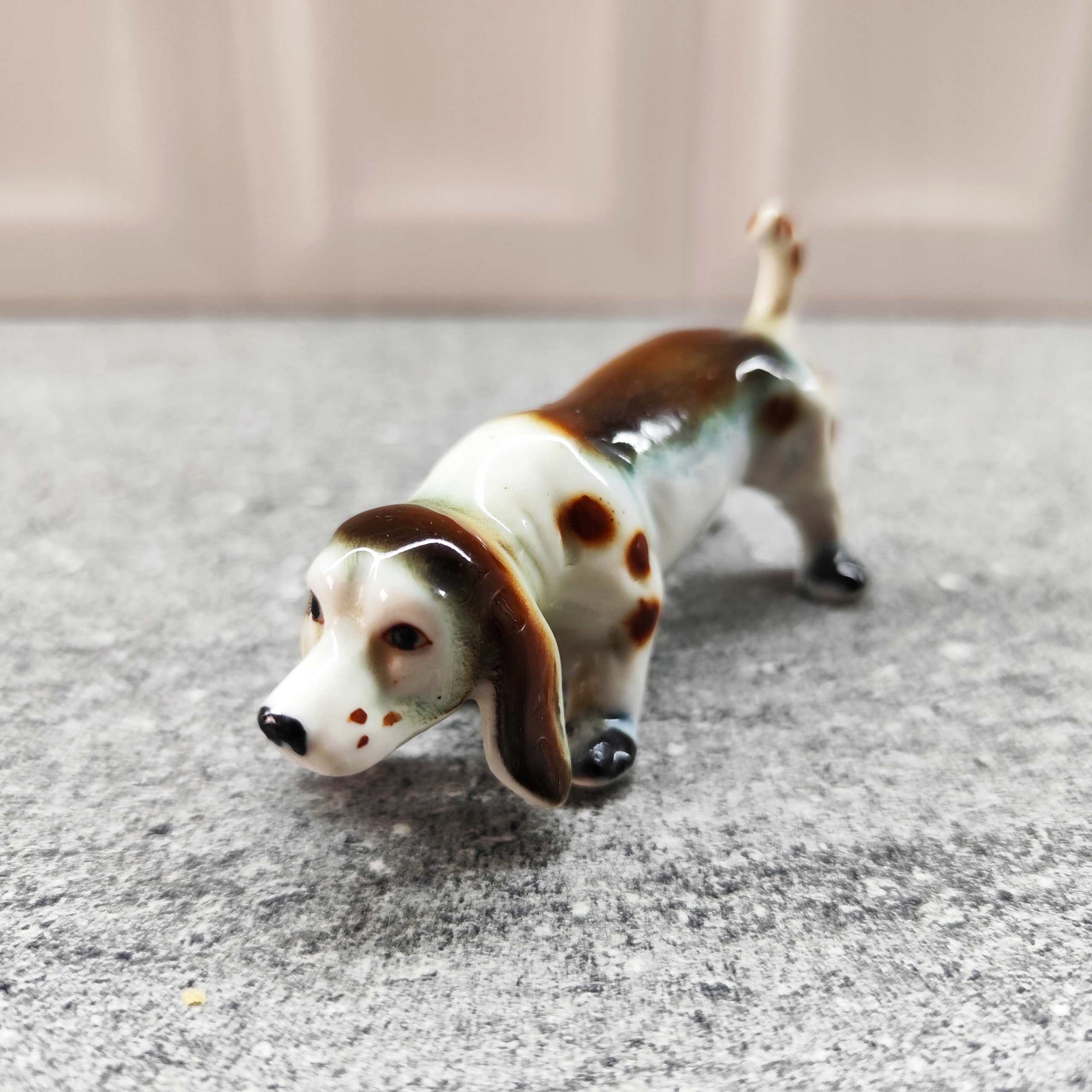 Фарфоровая статуэтка маленькая собака красивые цвета фарфоровая собака