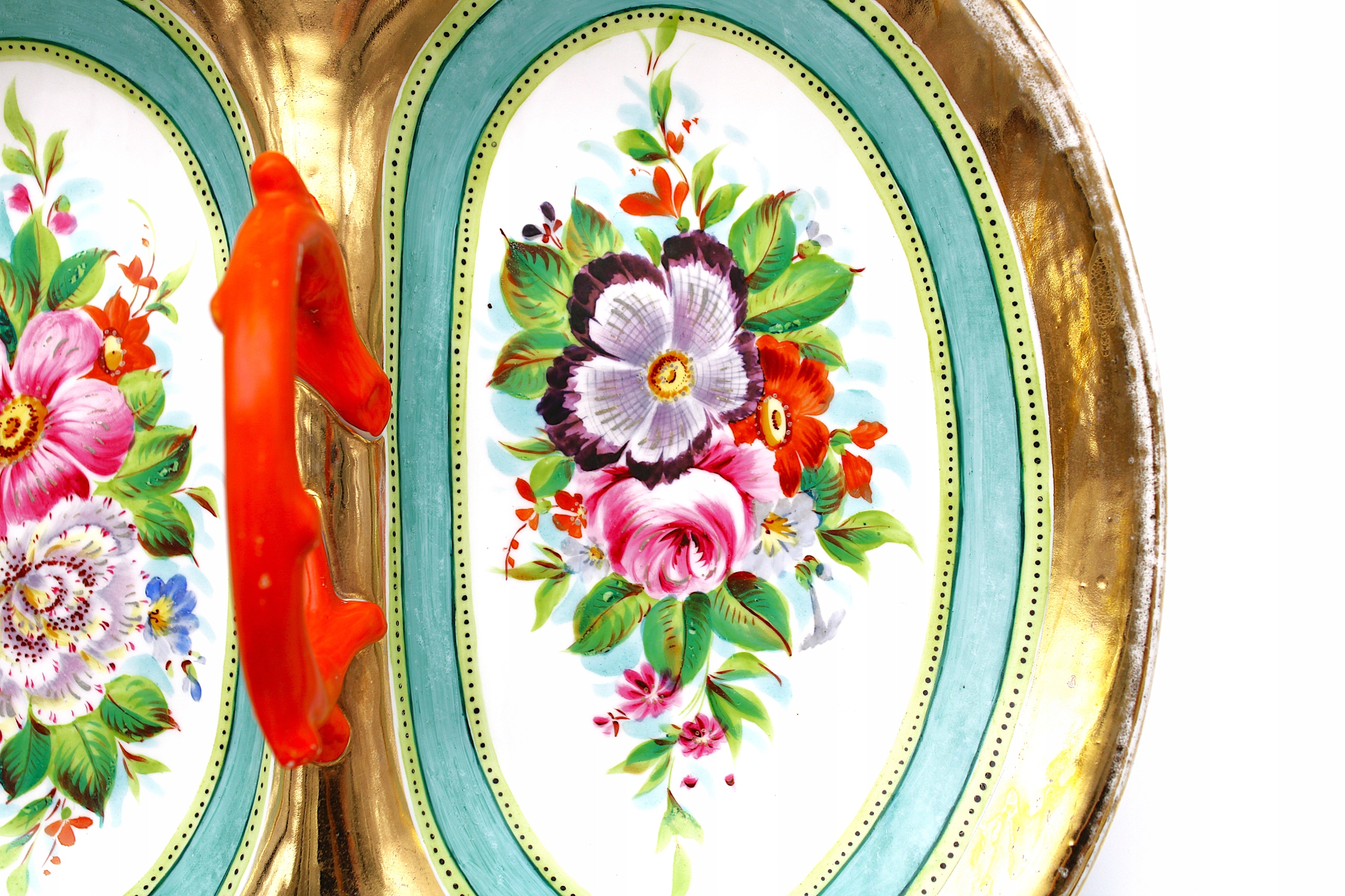 Я рекомендую старый древний кабаре с фарфоровой фабрики Fischer & Mieg в Pirkenhammer - в настоящее время Karlovy Wary/Brezowa Old Czecress Hand -Painted между 1857-1876, как и для сканирования, он имеет естественные временные и природные планы, показанные на фотосвязанном виде на Фотографии. 25,7 см ** Высота - 4,3 см ** высота с ручкой - 10,2 см