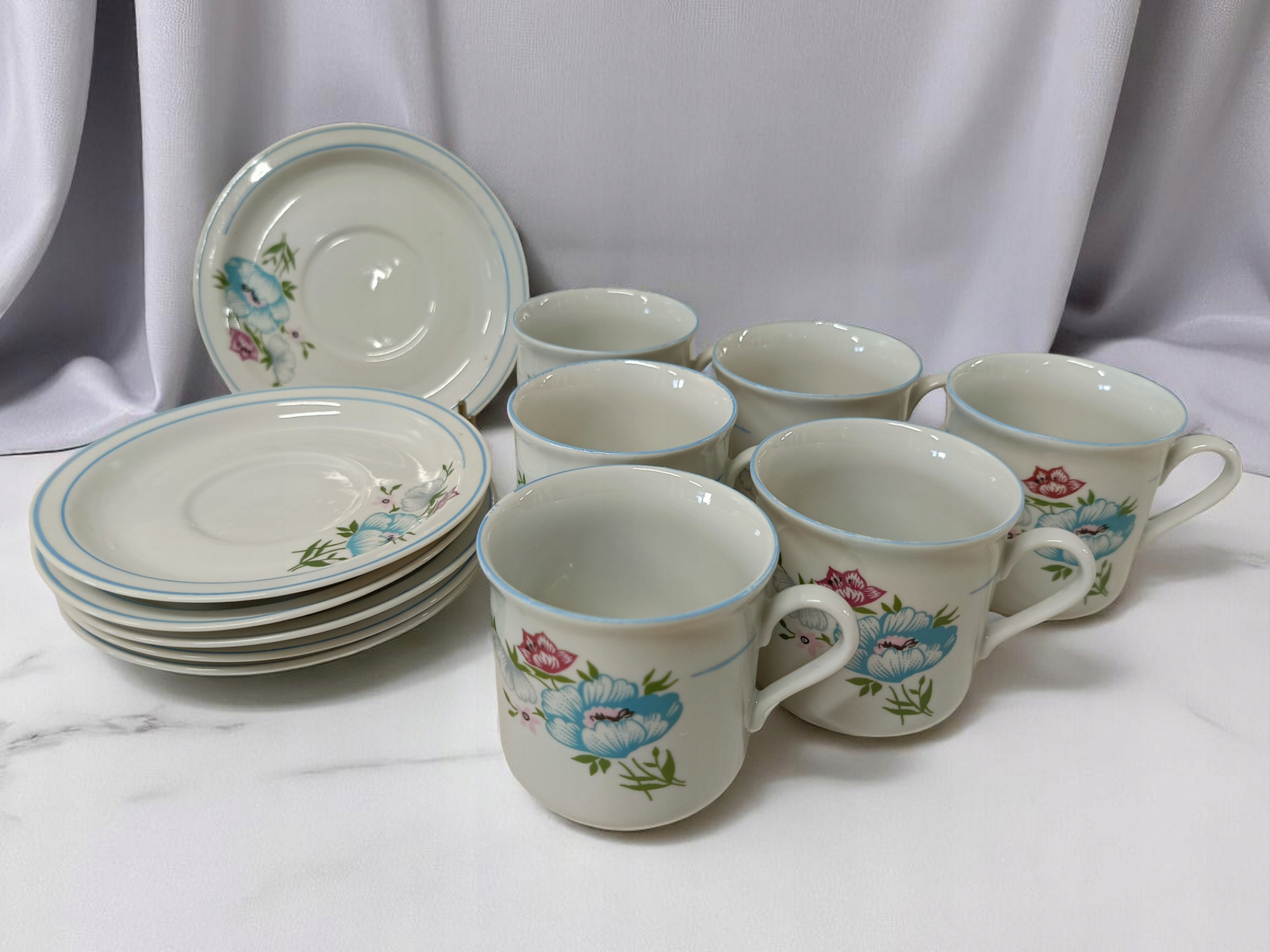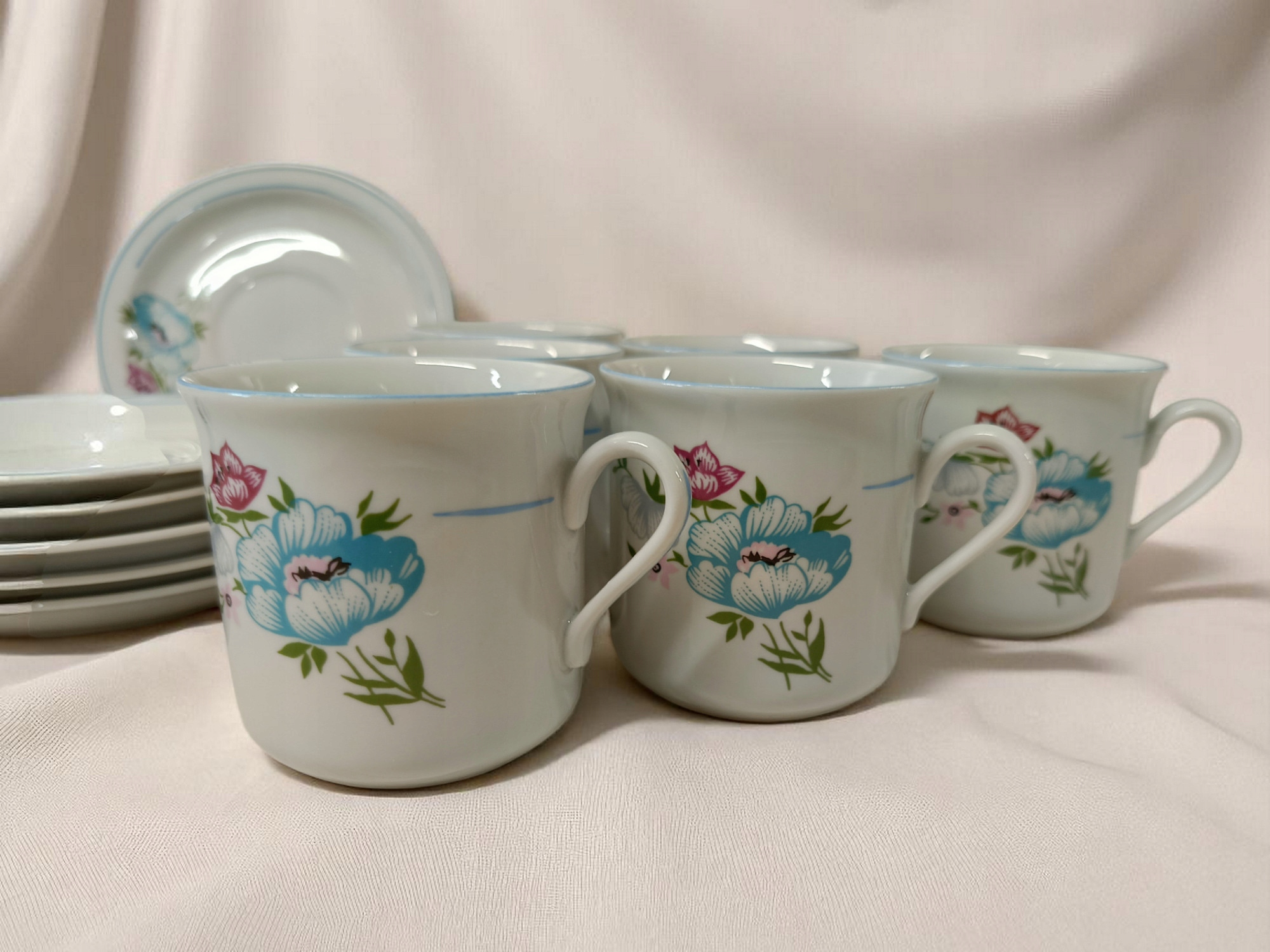 Фарфоровое кофе услуги цветы синие аксессуары