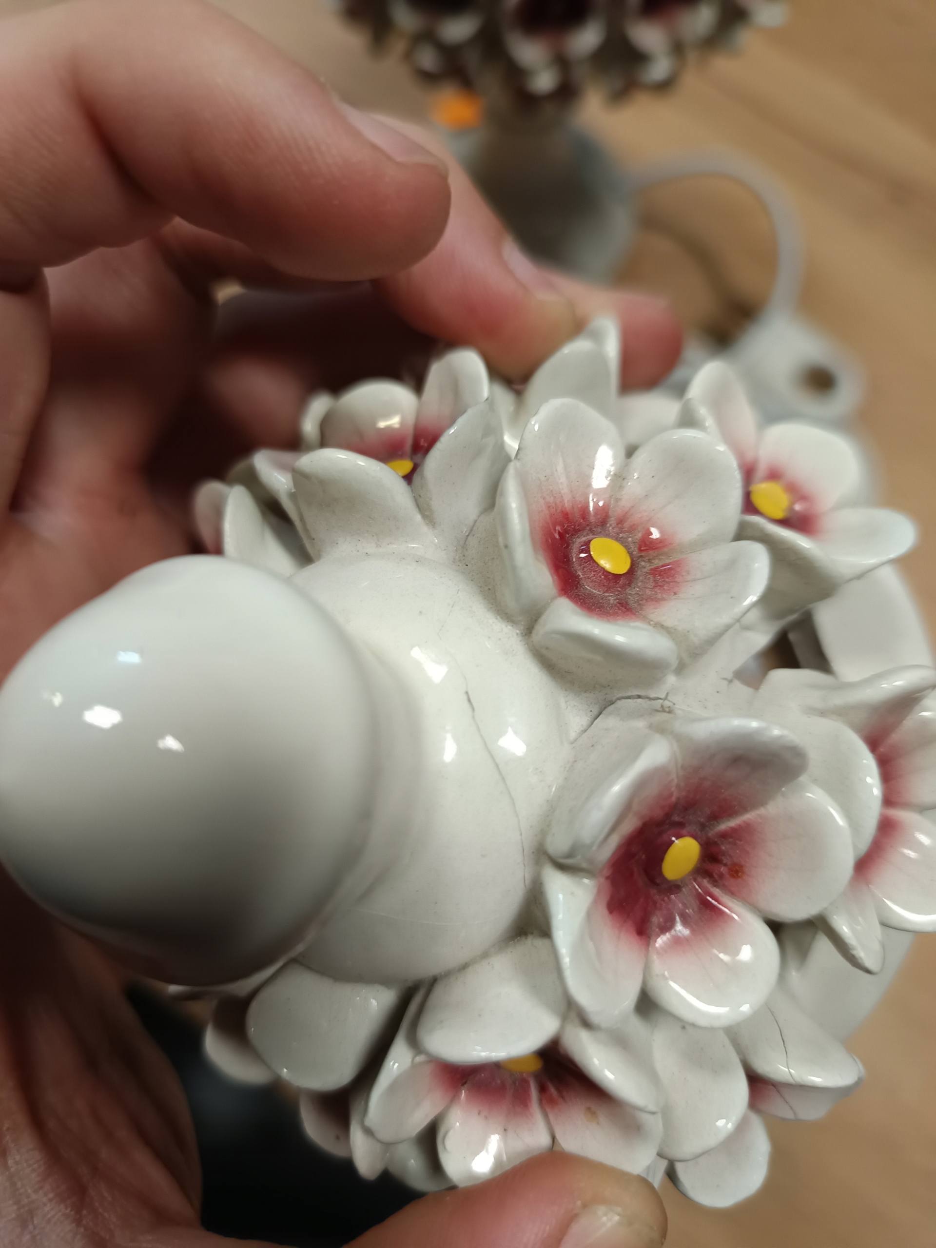 Порцелянова лампочка прикрашена квітами близько 25см заввишки