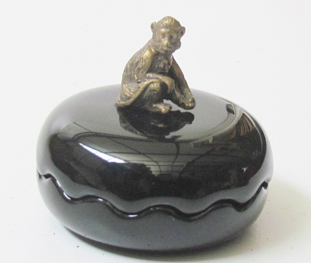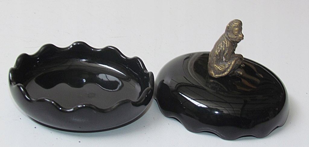 фарфоровая шкатулка. h1> фарфор в оттенке черного цвета. Дополнительным декоративным элементом является латунь, которая создает оригинальную отделку обезьяны. Это очаровательно и стильно, это определенно будет украшением и полезной вещью дома. h1> размер: высота 8,5 см, высота сосудов 4,5 см, диаметр 9 см. h1> cc-64c h1>