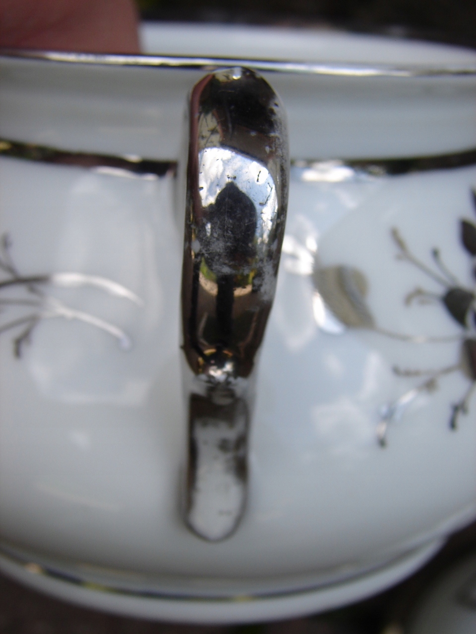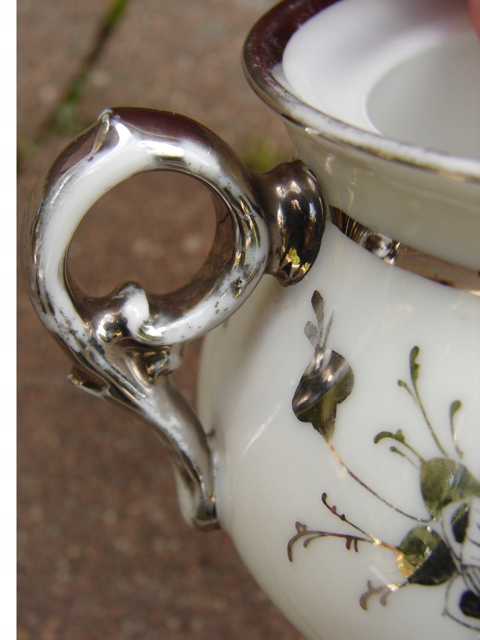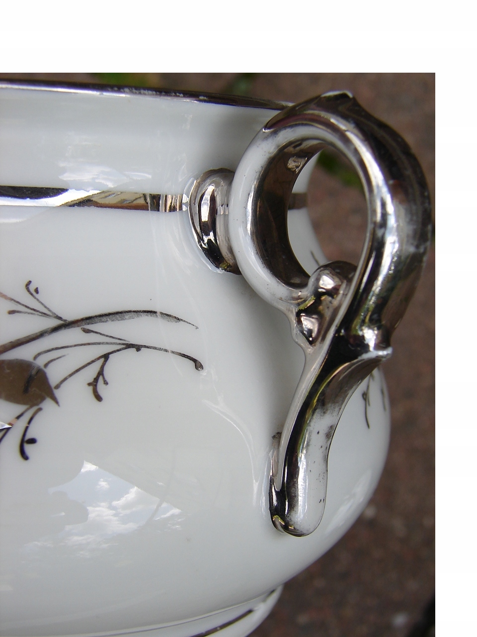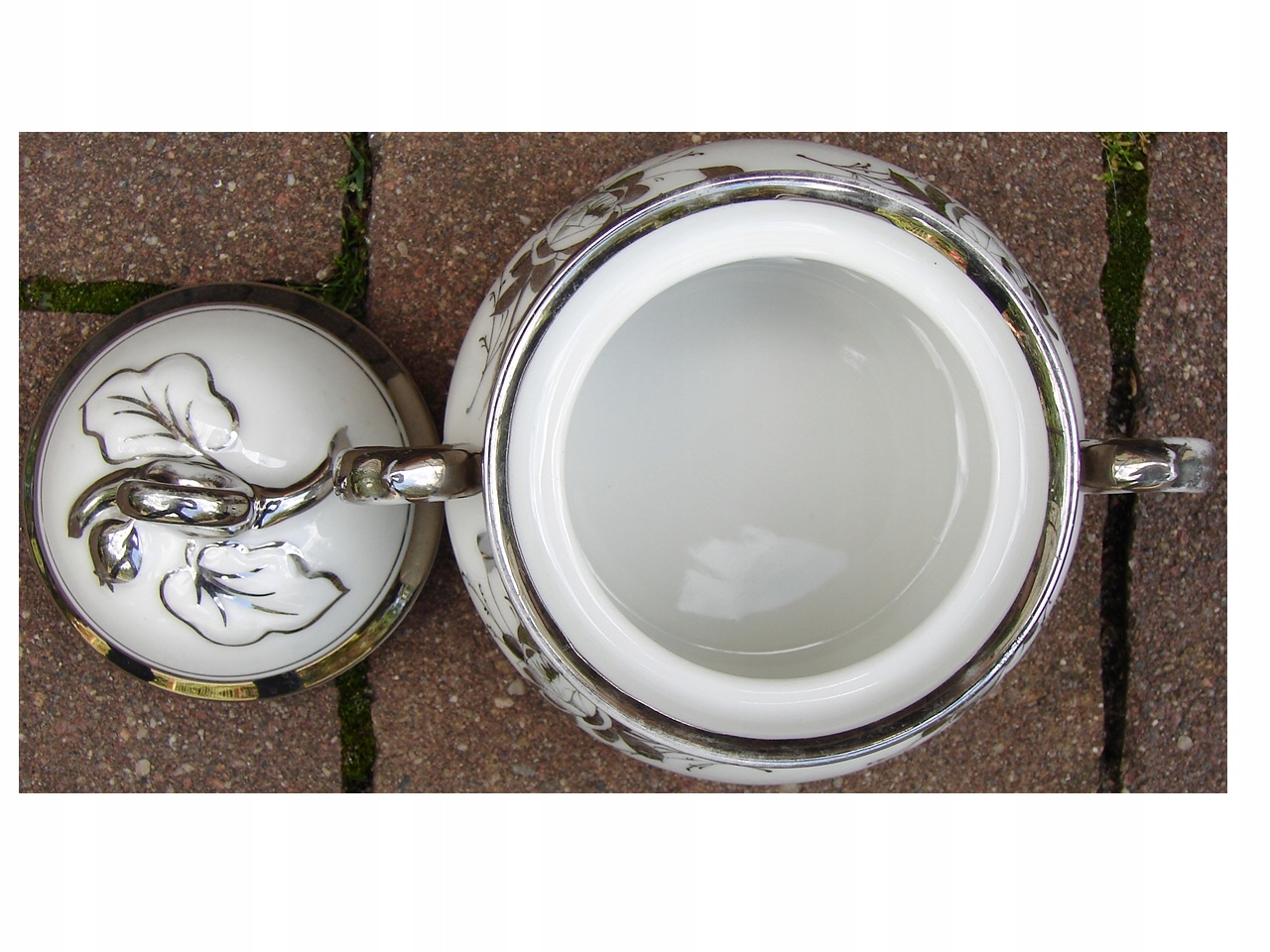 Фарфоровая сахарная чаша, украшенная настоящим серебром.