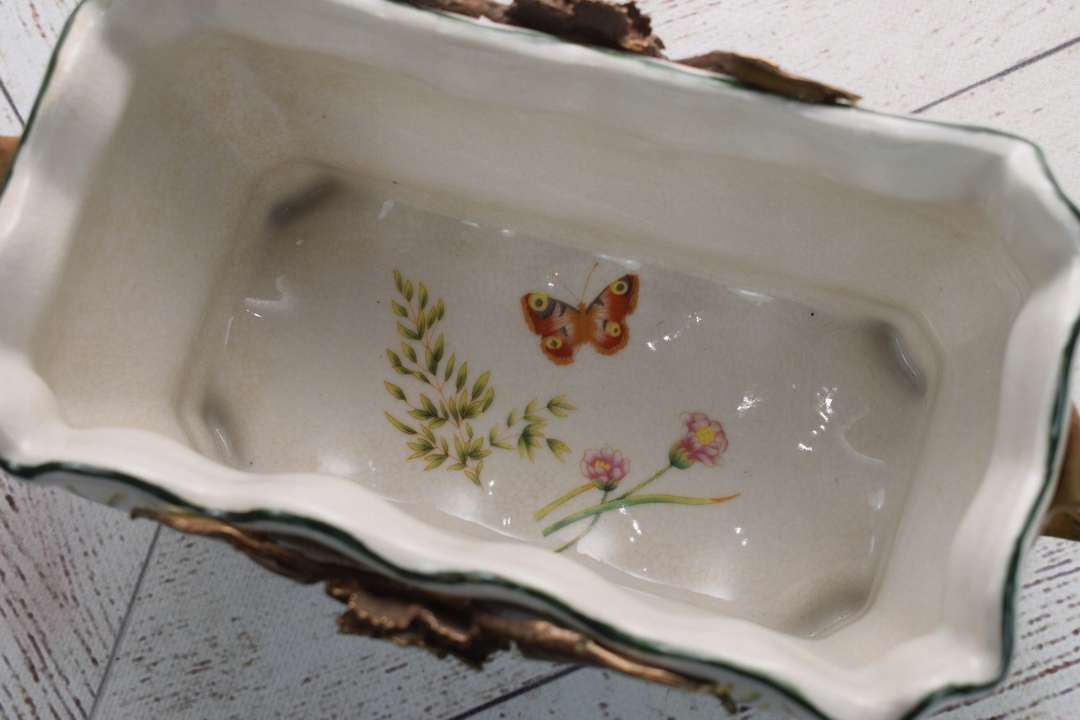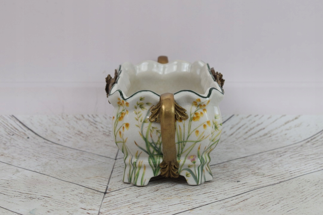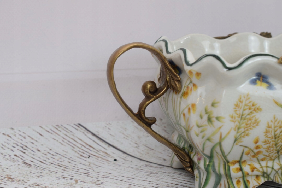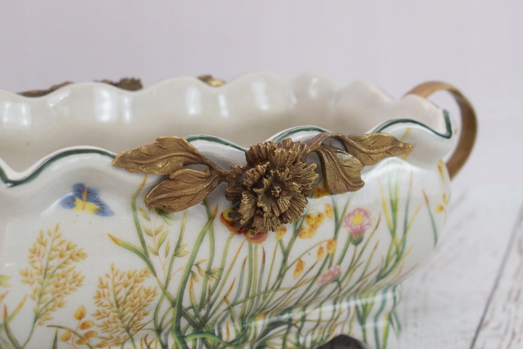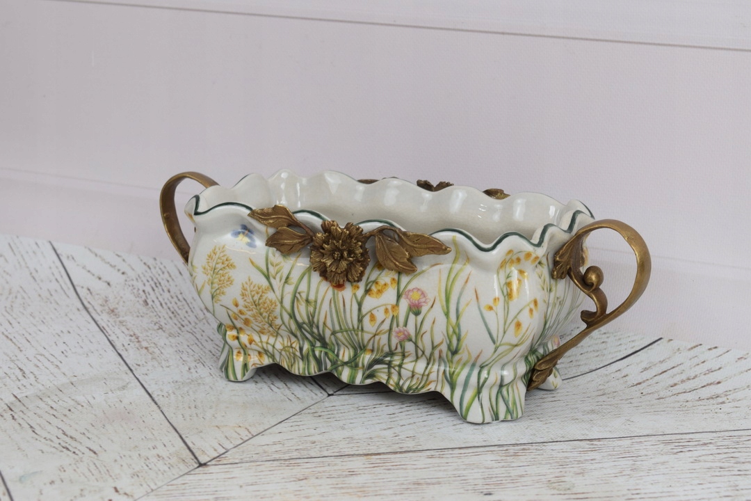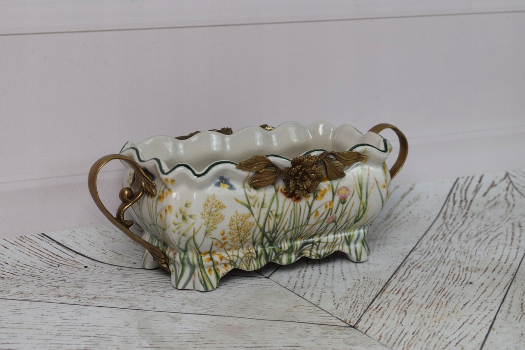 Фарфоровое отделение патера - белая миска - цветы - фарфор + бронза