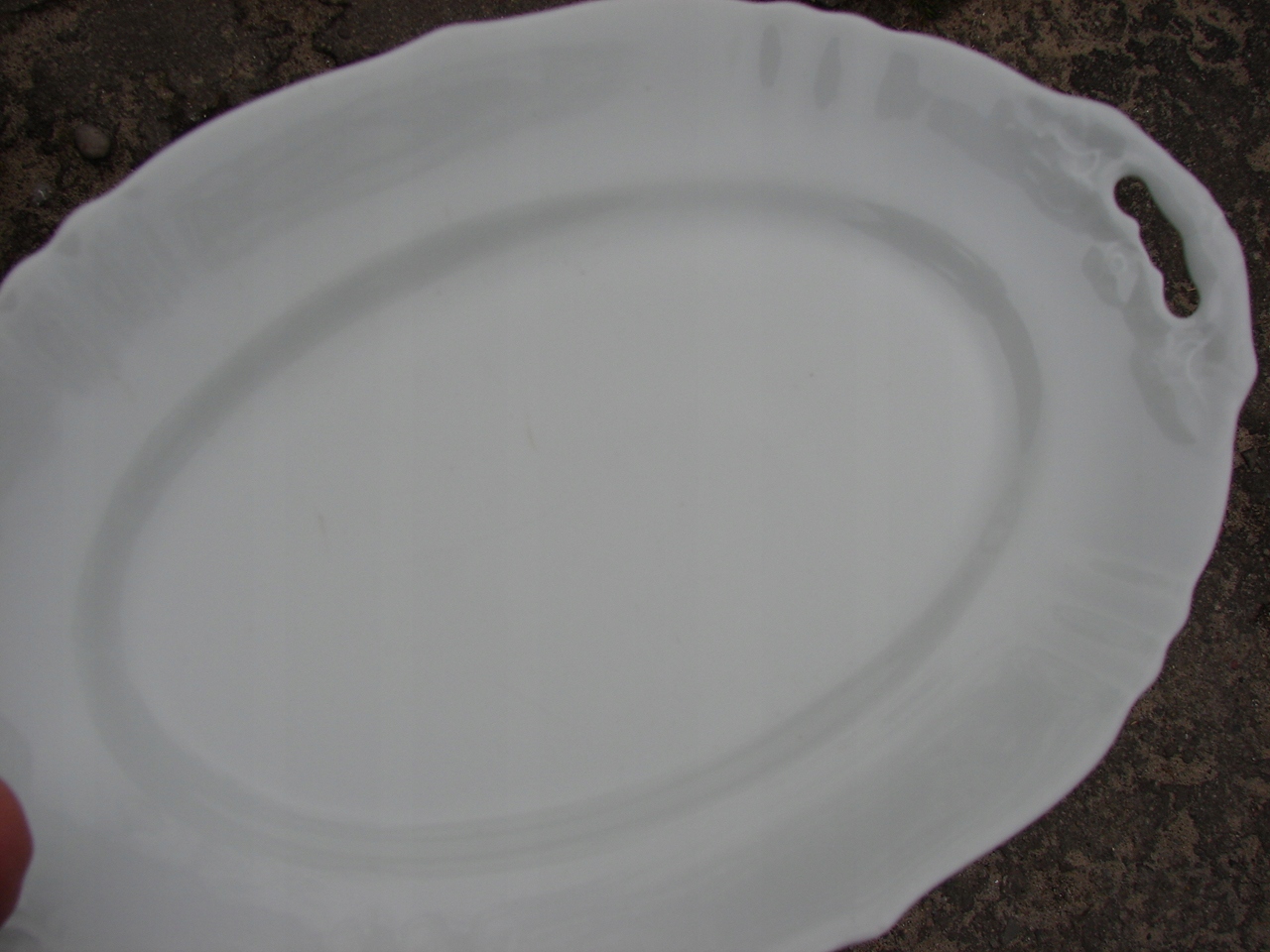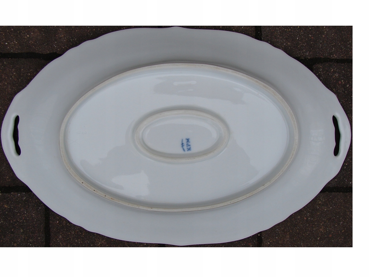 Старое фарфоровое блюдо с ручками к центру стола.