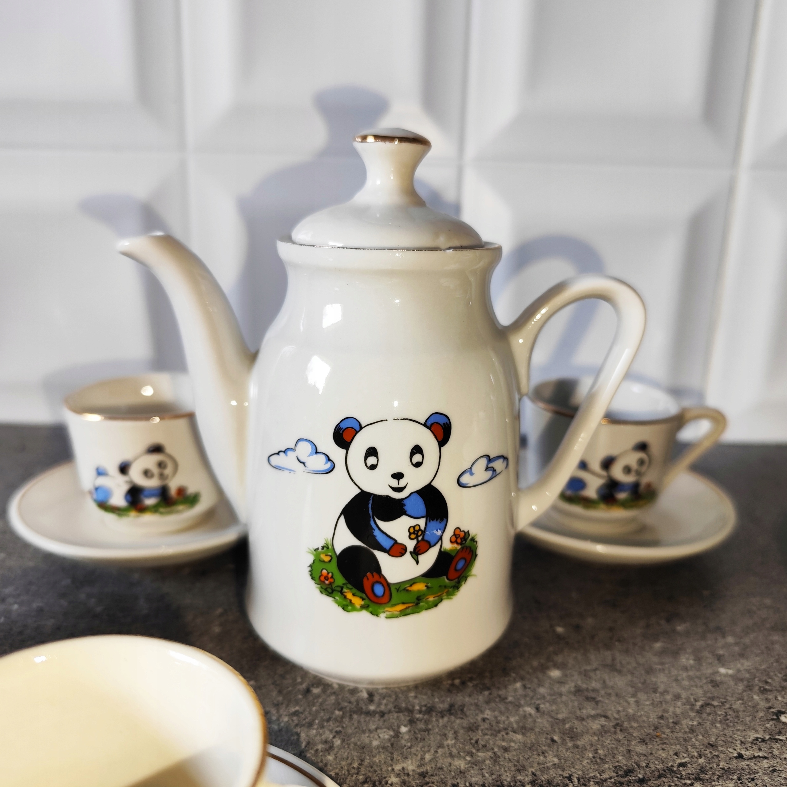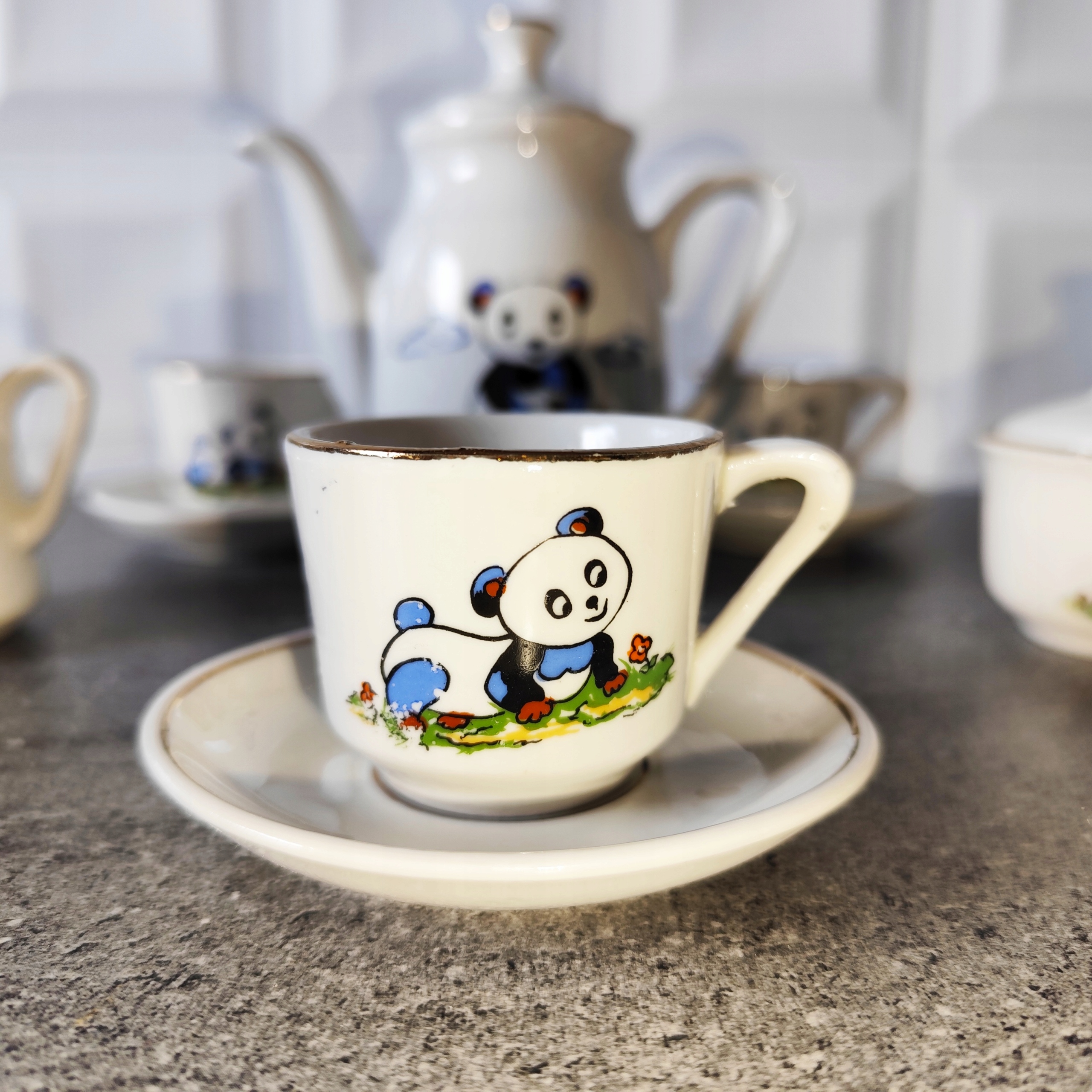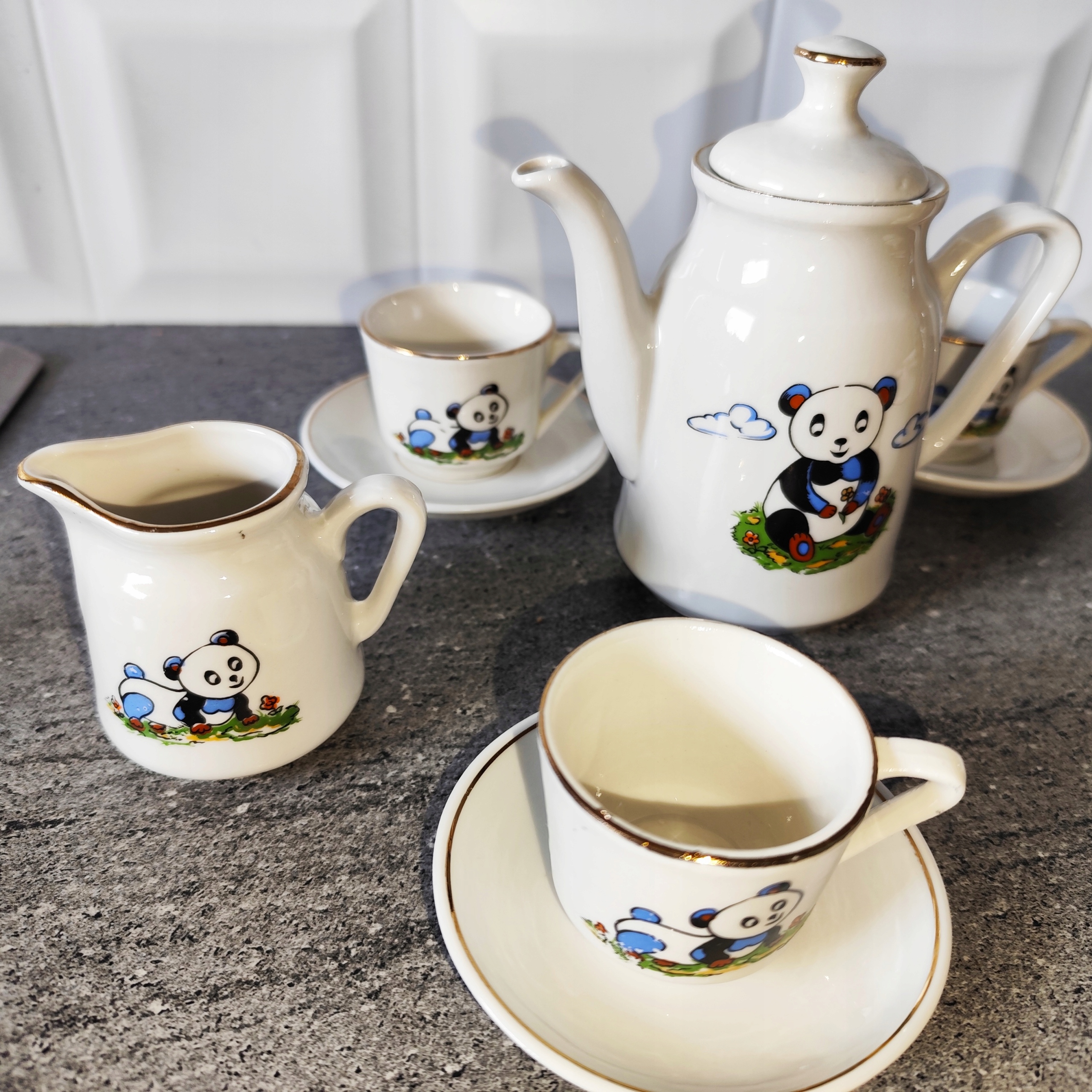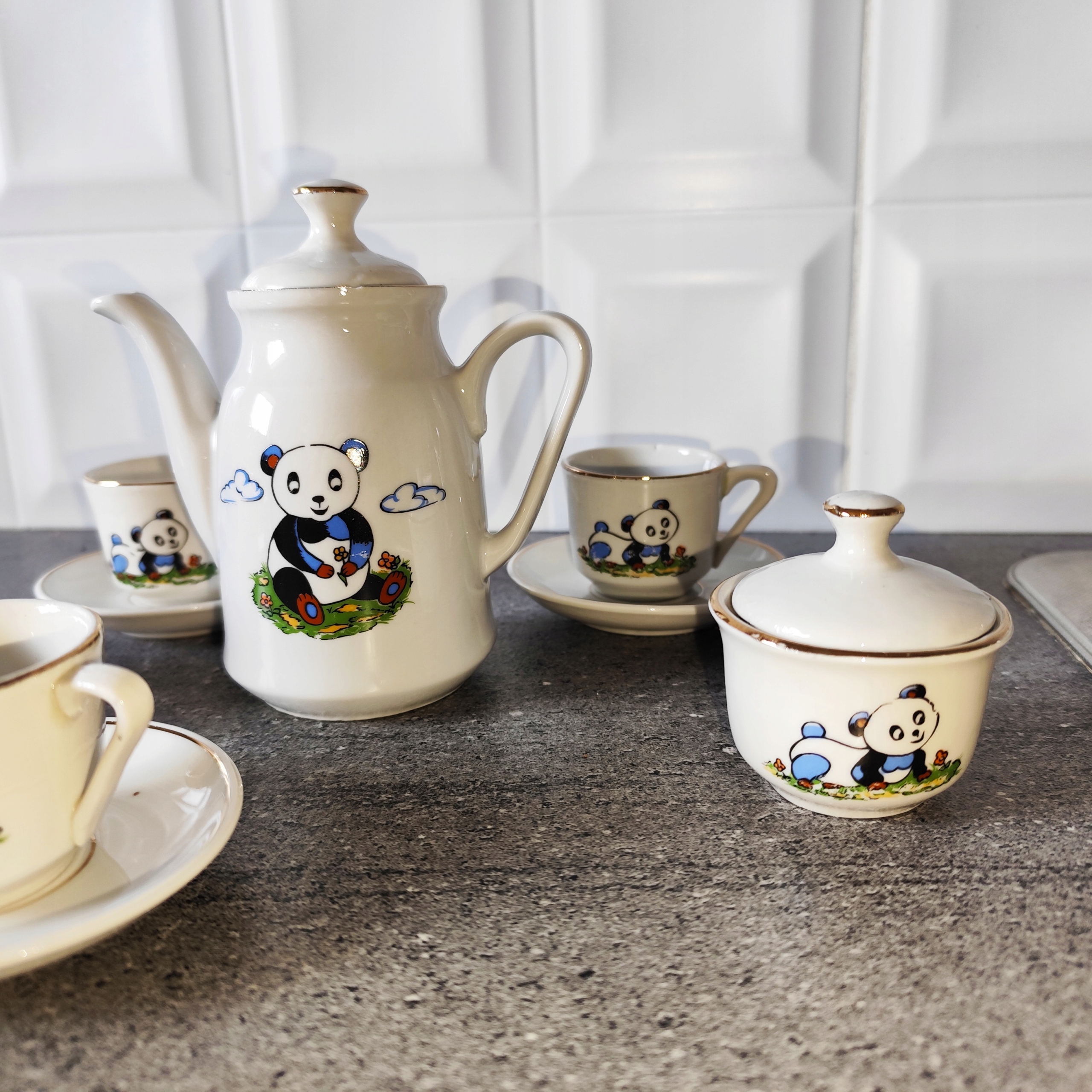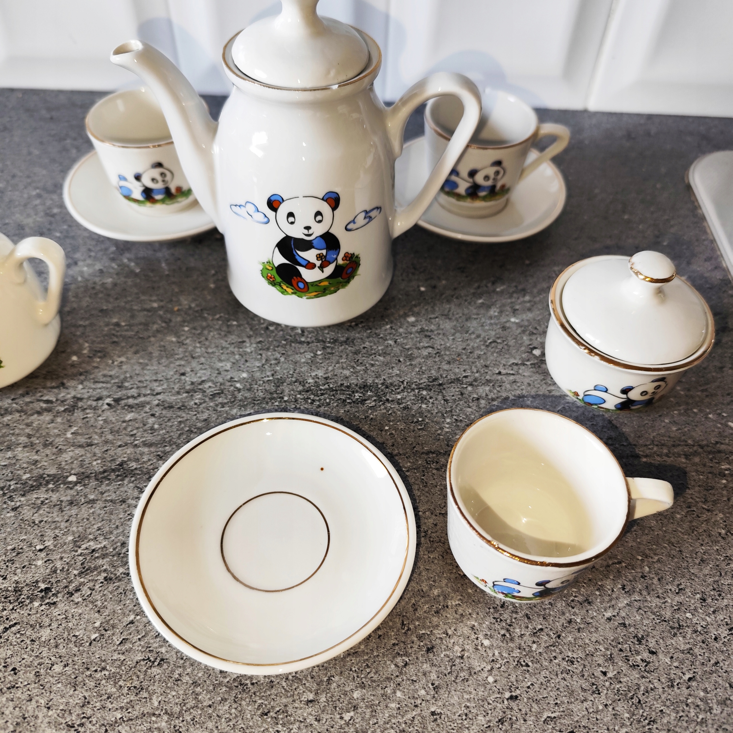 Мини фарфоровый сервиз с пандой с позолотой