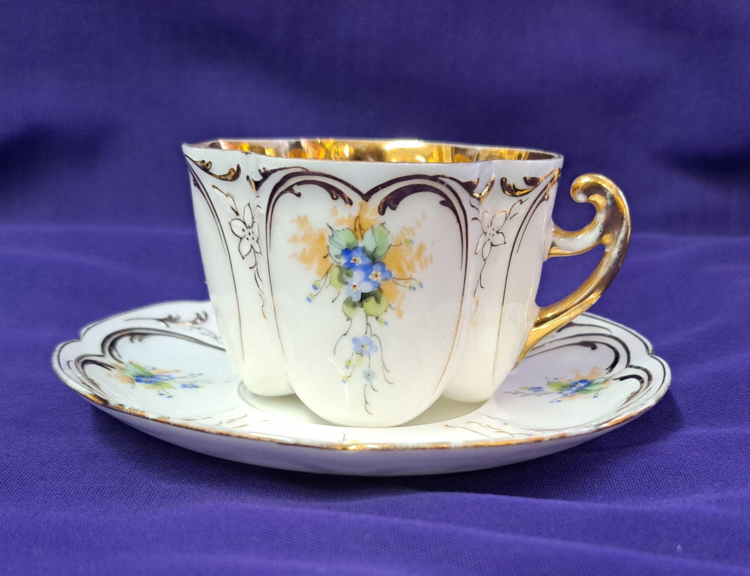 Установлен из фарфора высочайшего качества. Проводится в первые годы деятельности Розенталя. Чашка, сделанная из тонкого снежного, фарфора с красивым стилизованным ухом. Хорошая, слегка распространенная форма. Волнистые края. Большой элегантный украшен цветочным мотивом. Деликатная позолота добавляет очарование. Настоящая фарфоровая редкость искусства.