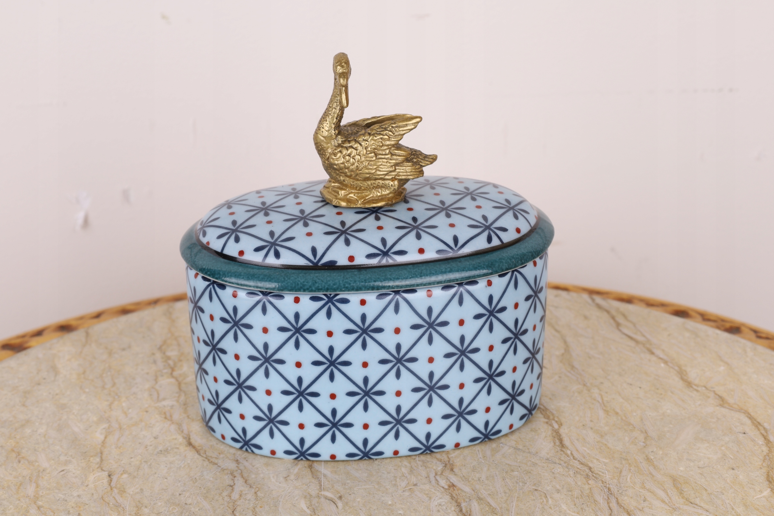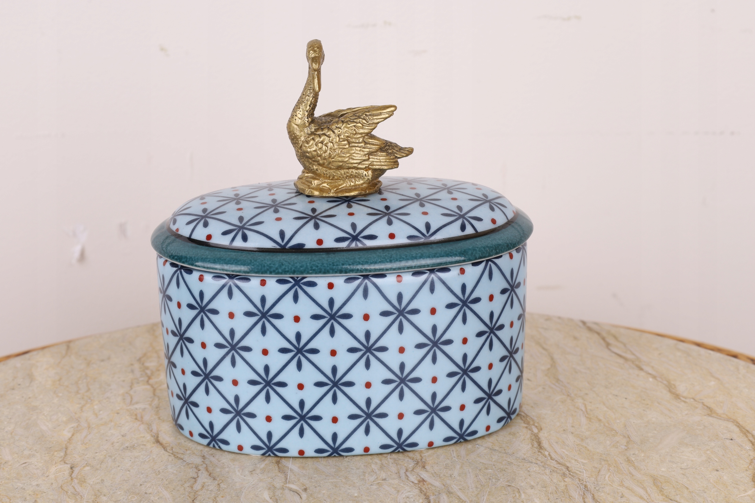 Фарфоровая Шкатулка - Коробка - КОРИЧНЕВАЯ ОКРАСКА! ЛЕБЕДЬ