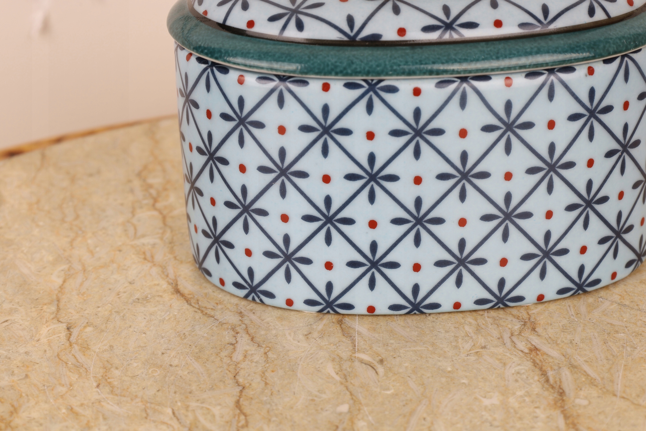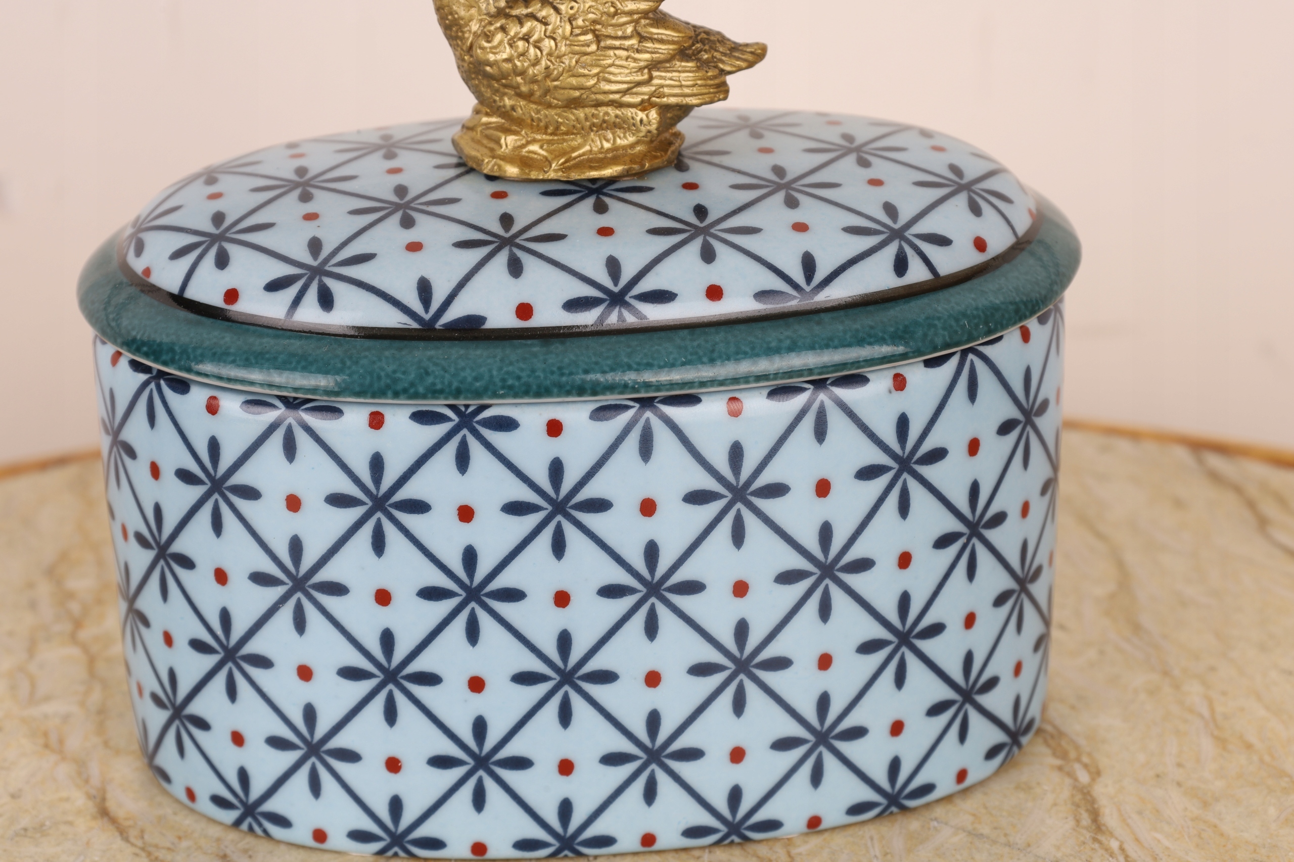 - Фарфоровая шкатулка, украшенная элементами бронзы.