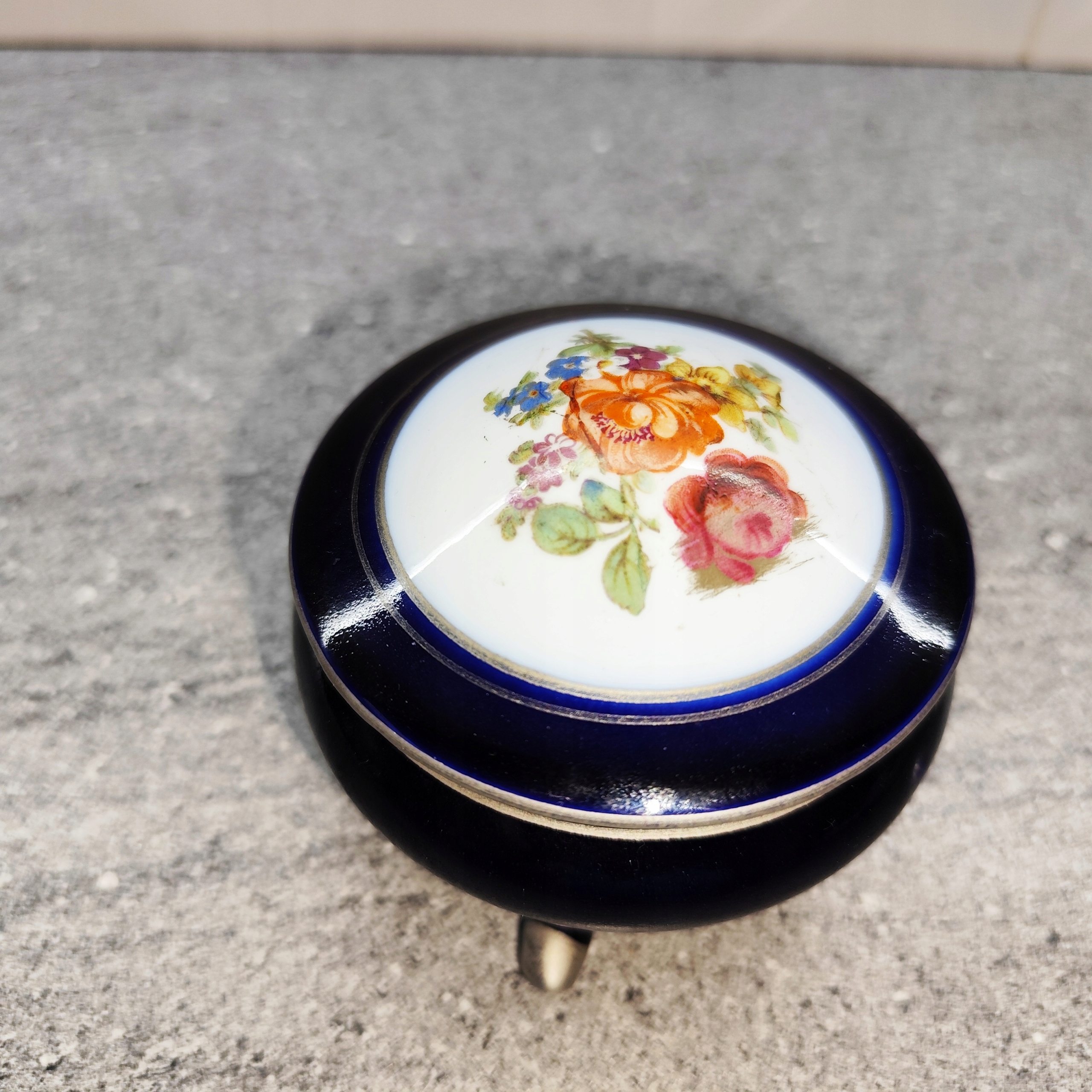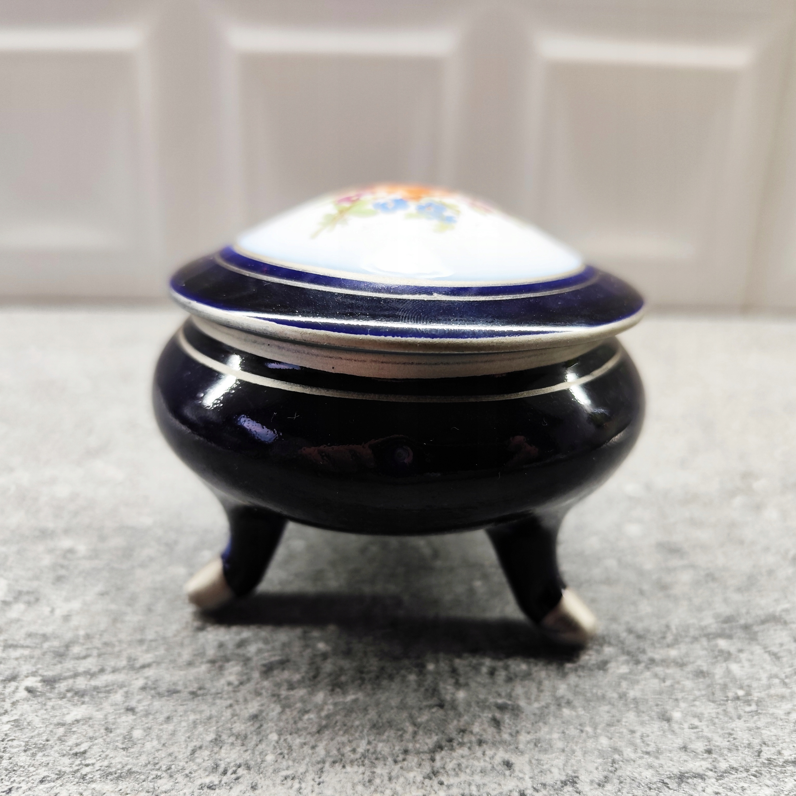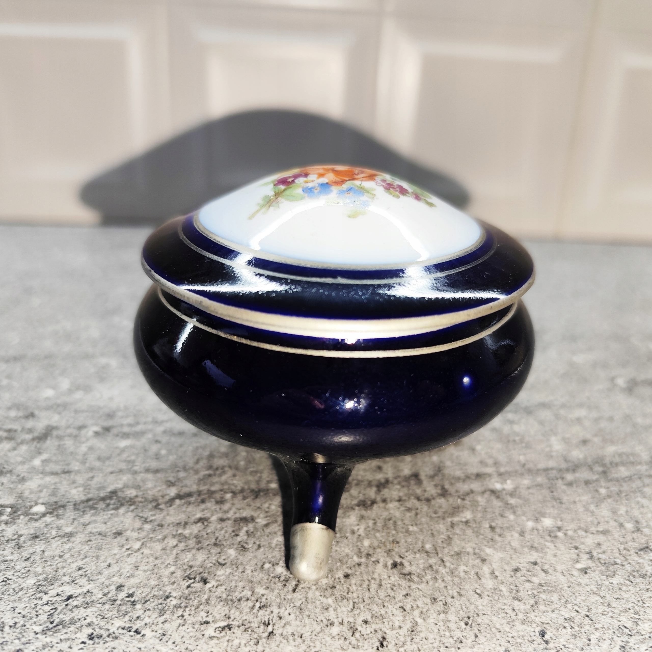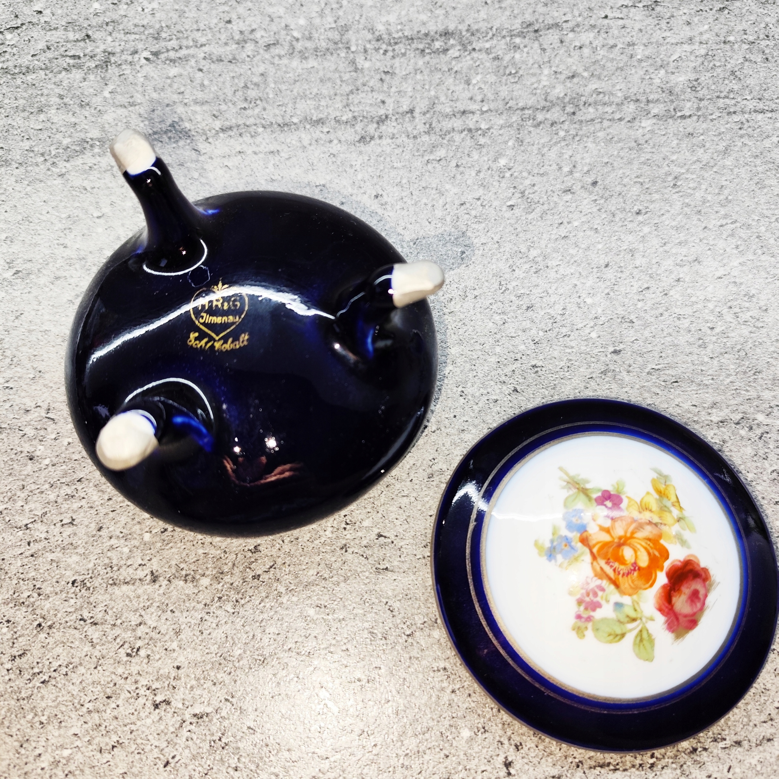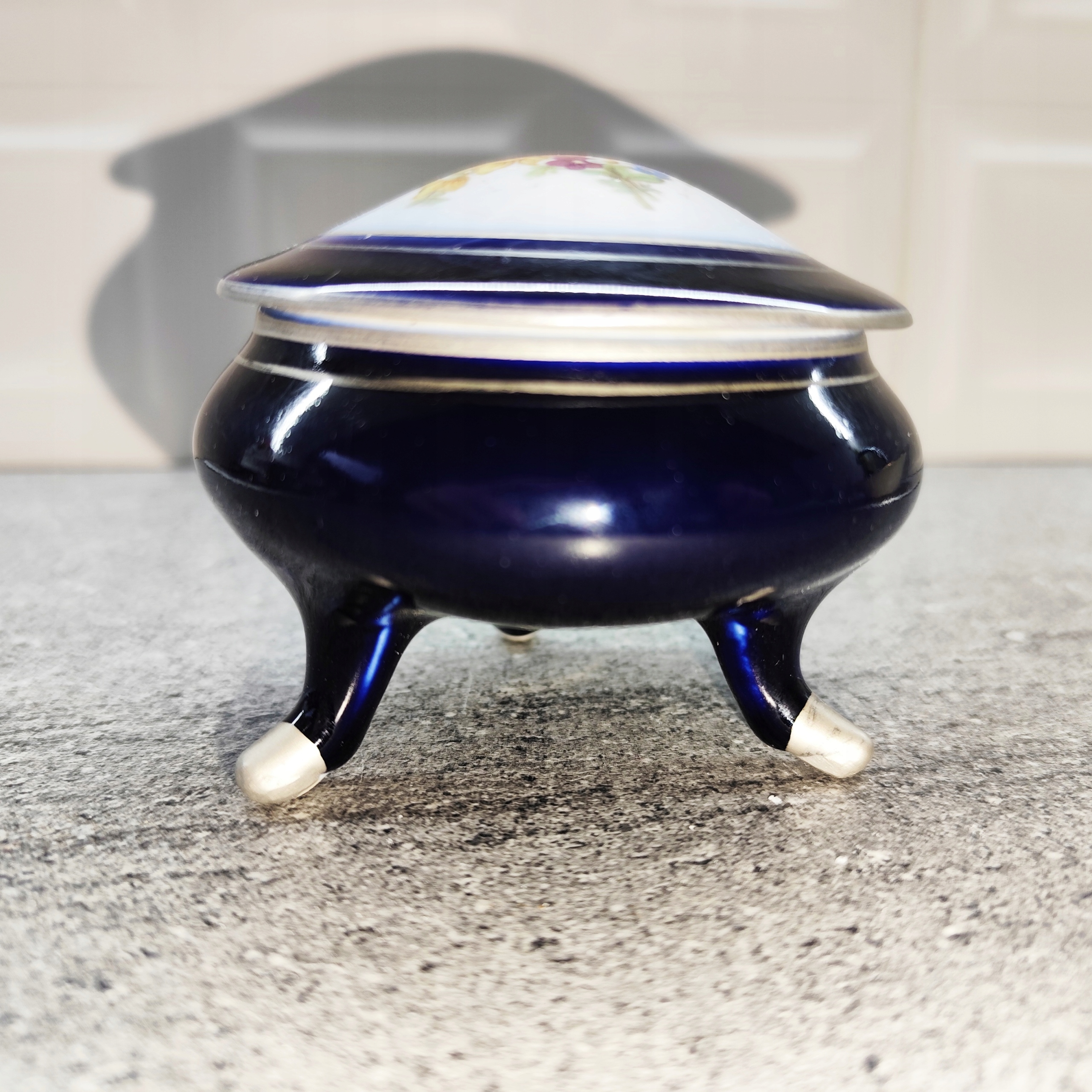 Фарфоровая шкатулка кобальтово-синего цвета, фарфоровая шкатулка Ильменау