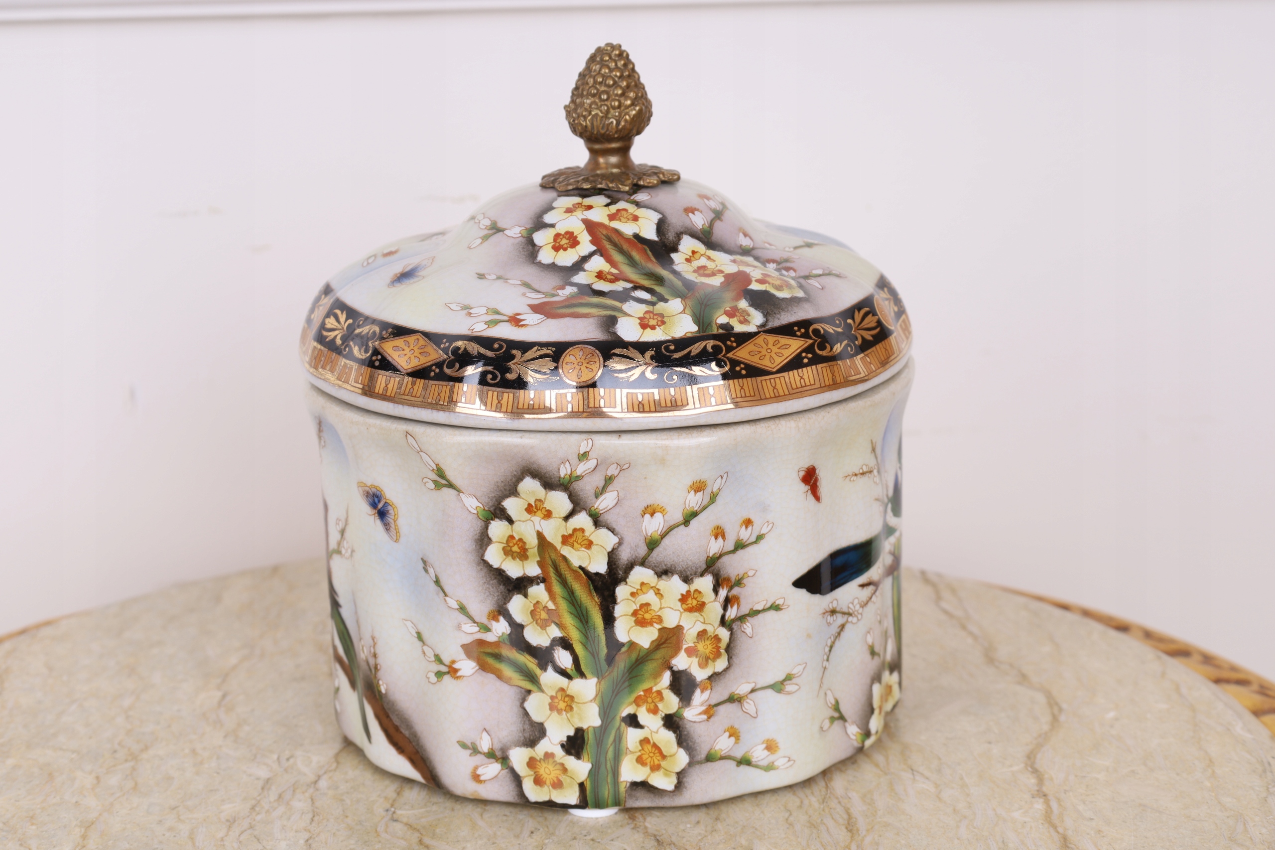 - Фарфоровая шкатулка, декорированная бронзовыми элементами.