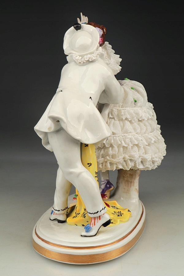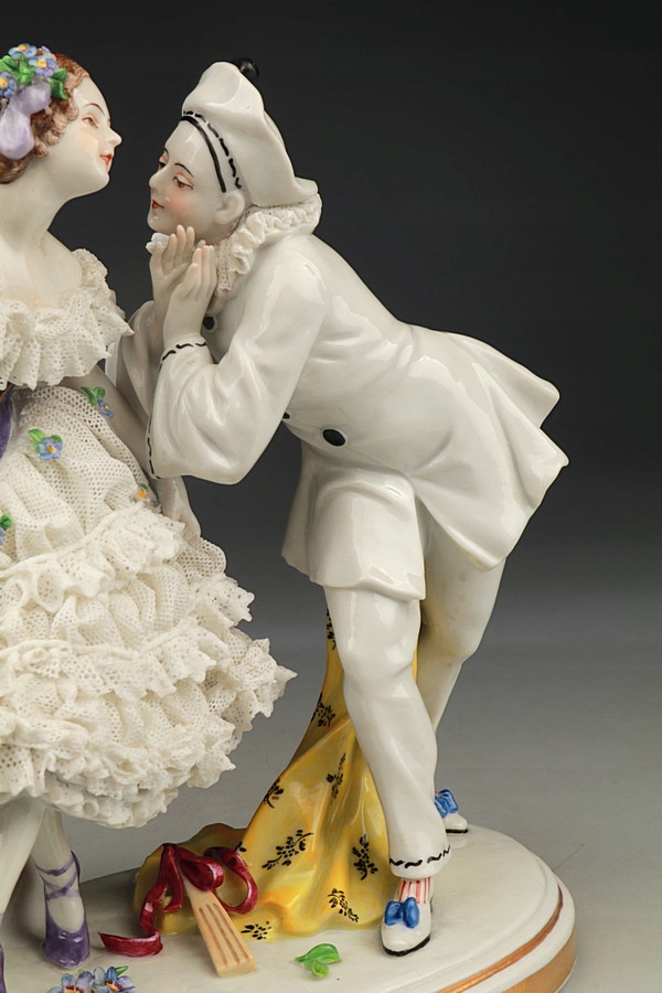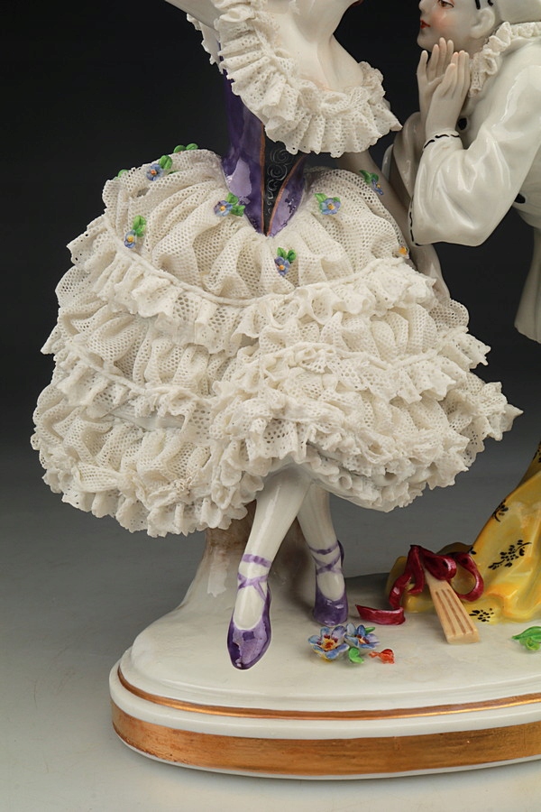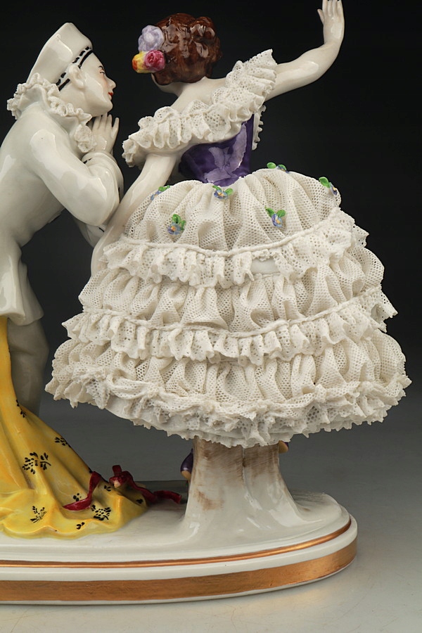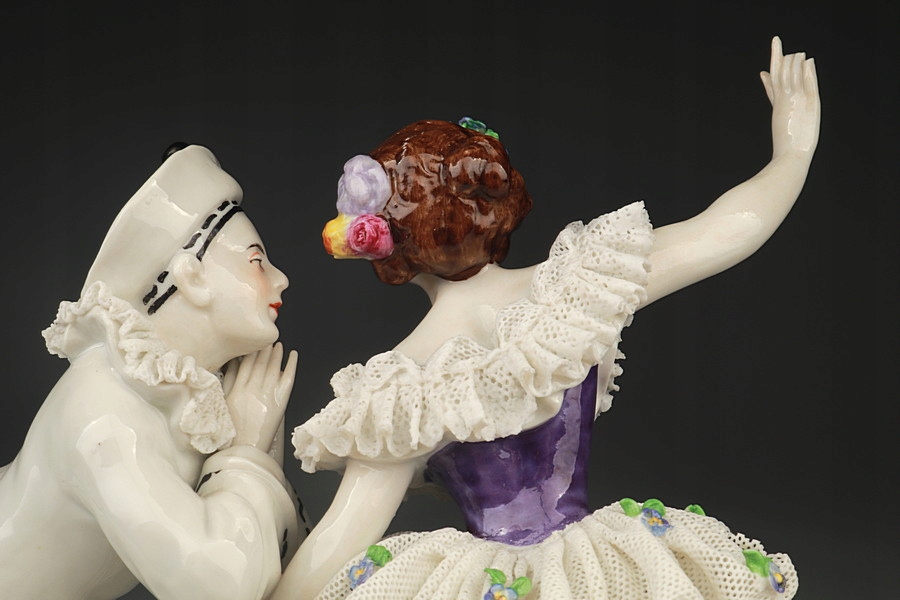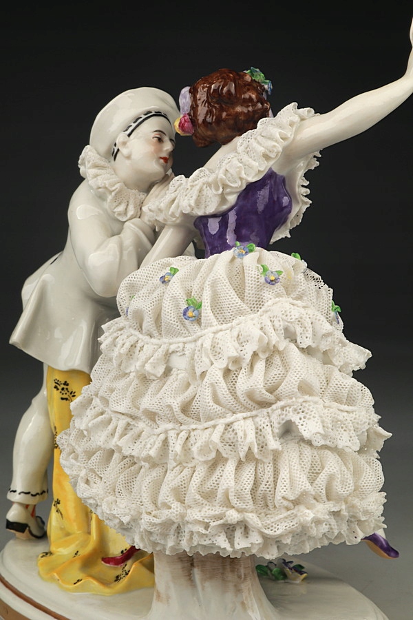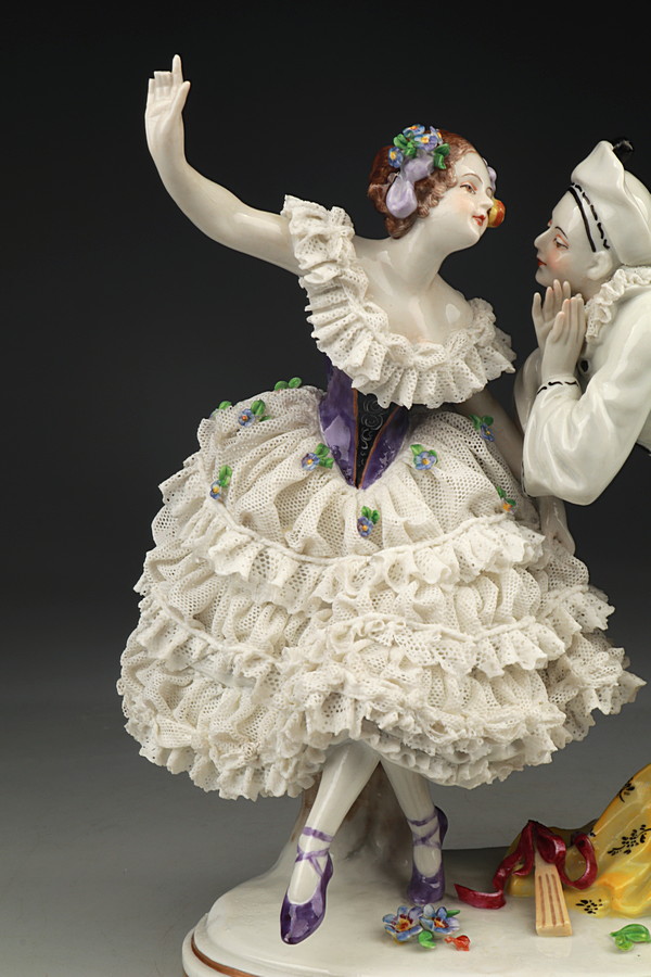 Фарфоровая статуэтка - Танцовщица и Пьеро - Кружева - Volkstedt