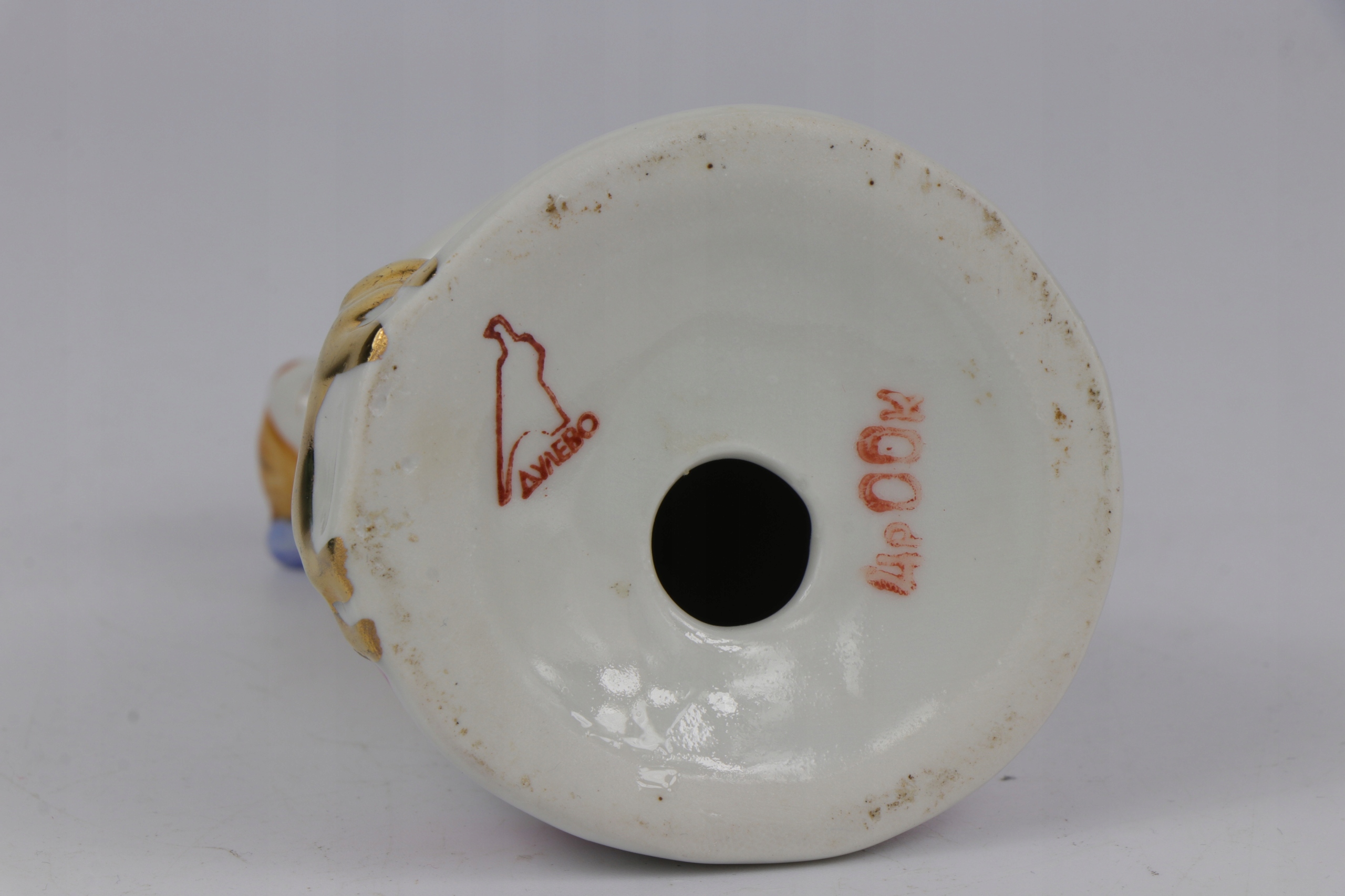Фарфоровая фигурка девушки с чайником, расписанная вручную, подписанная маркой Дулевского завода «Дулевский фарфоровый завод». Автор проекта – Нина Александровна Малышева (1914–1983), известный скульптор по фарфору.