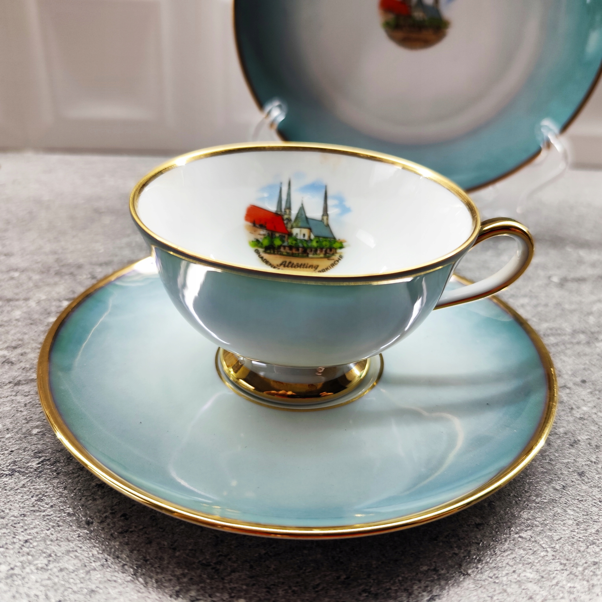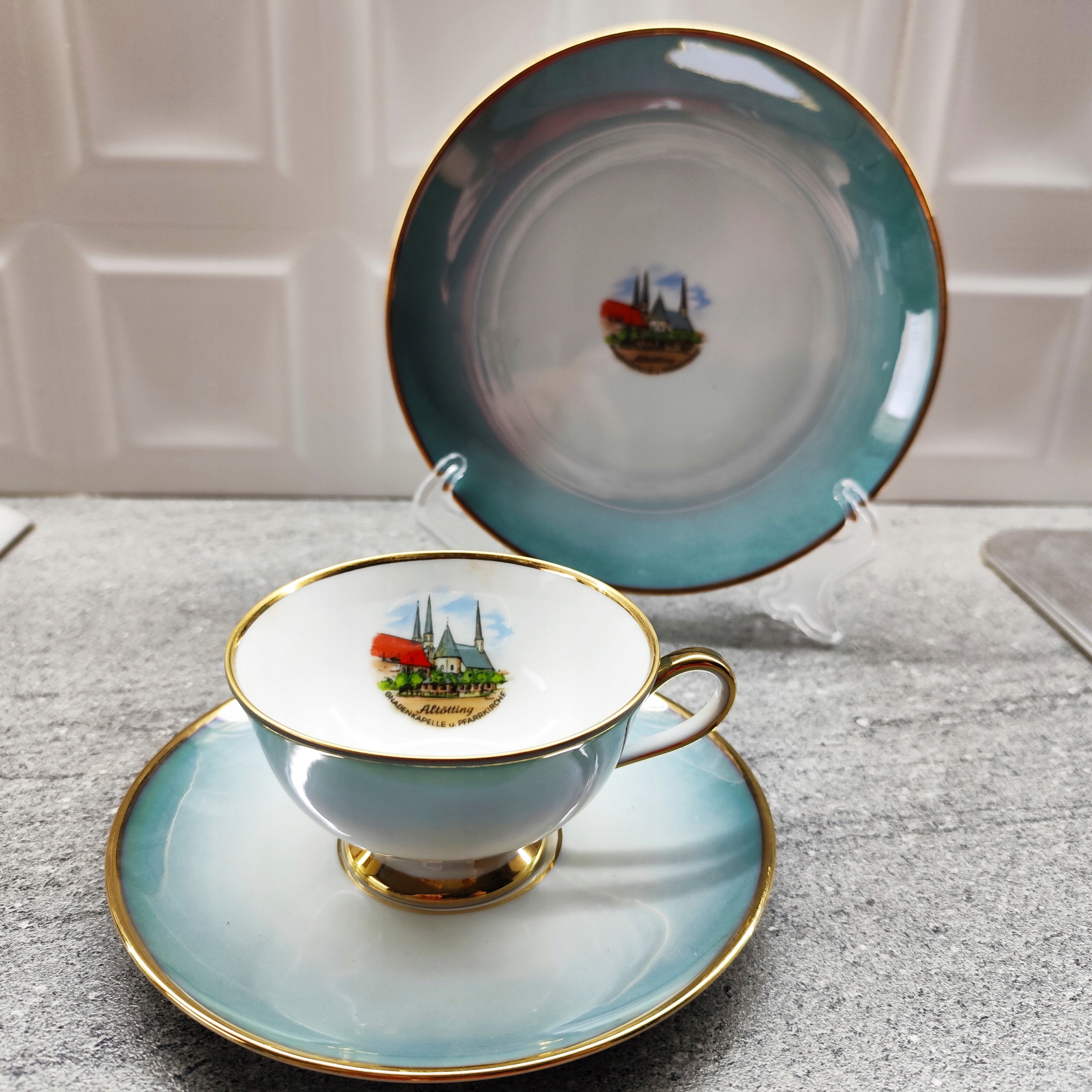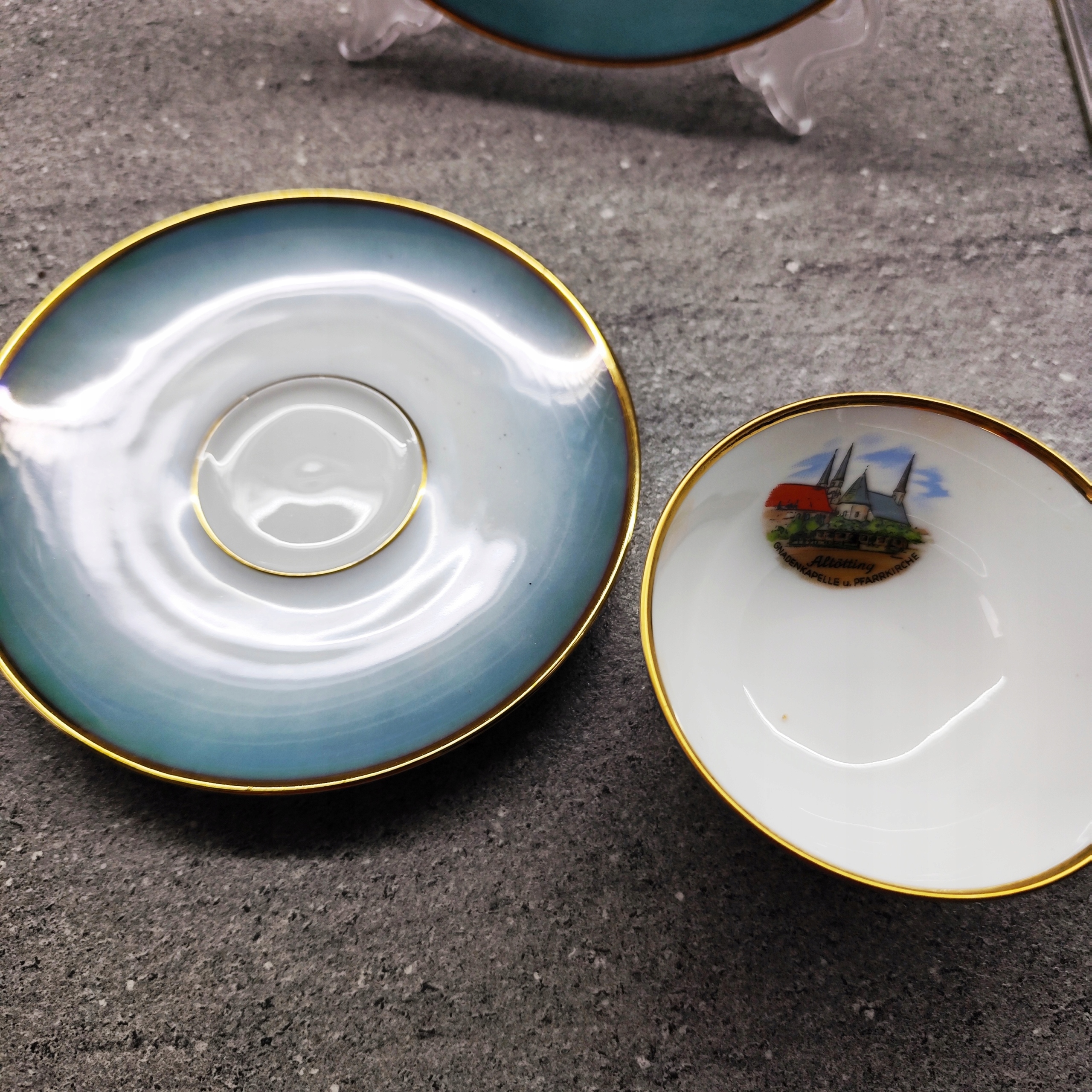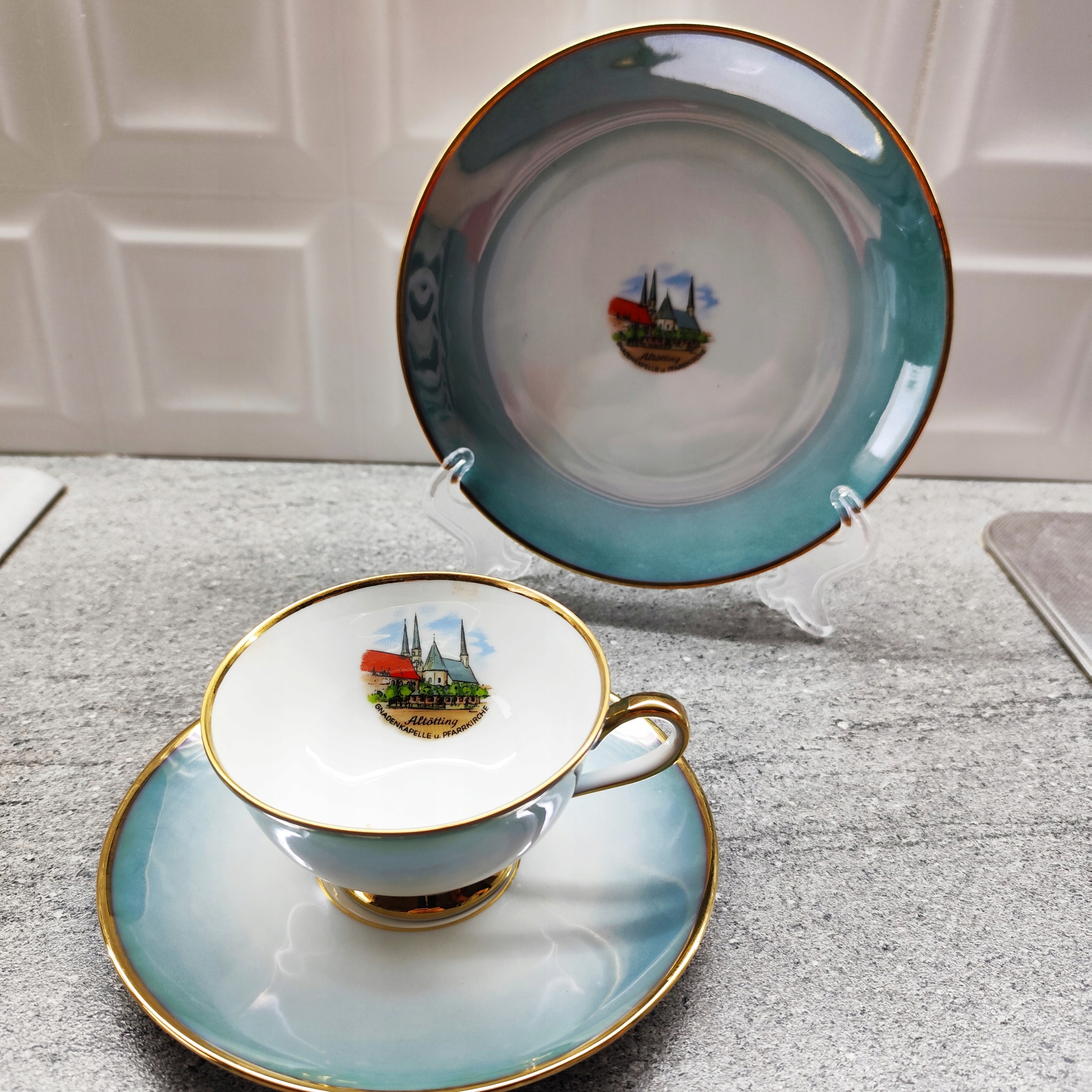 Фарфоровое трио, фарфоровая чашка и блюдце мятного цвета + бесплатно