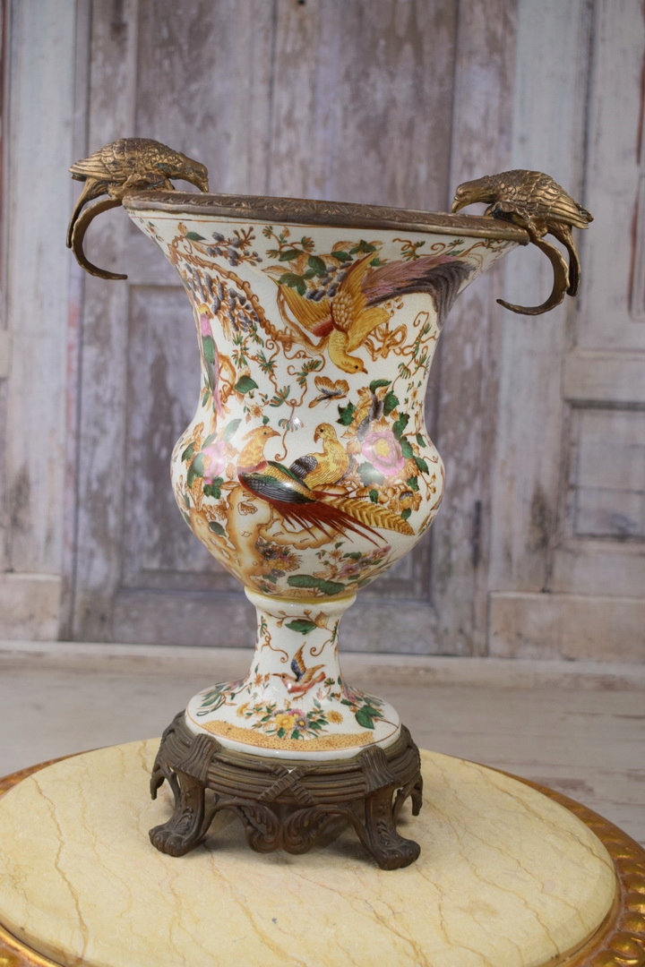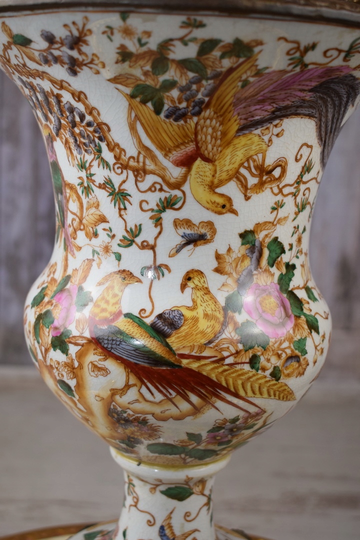 Порцелянова ваза - Птахи - Квіти - Порцеляна з бронзою - Подарункове оформлення
