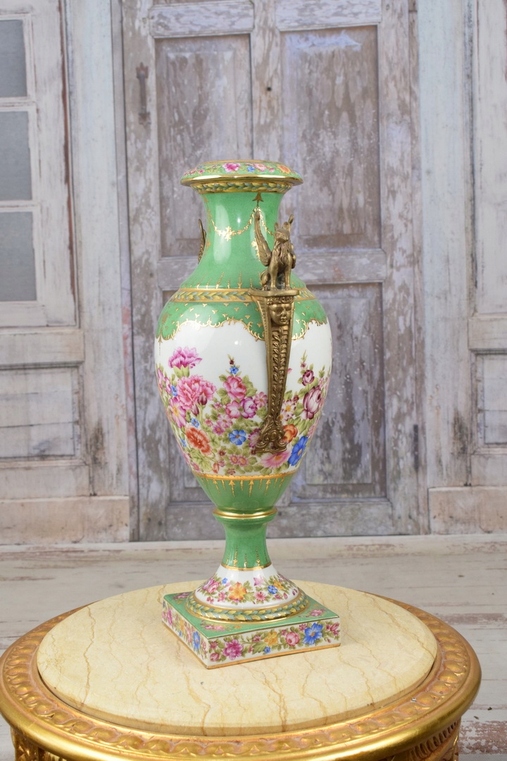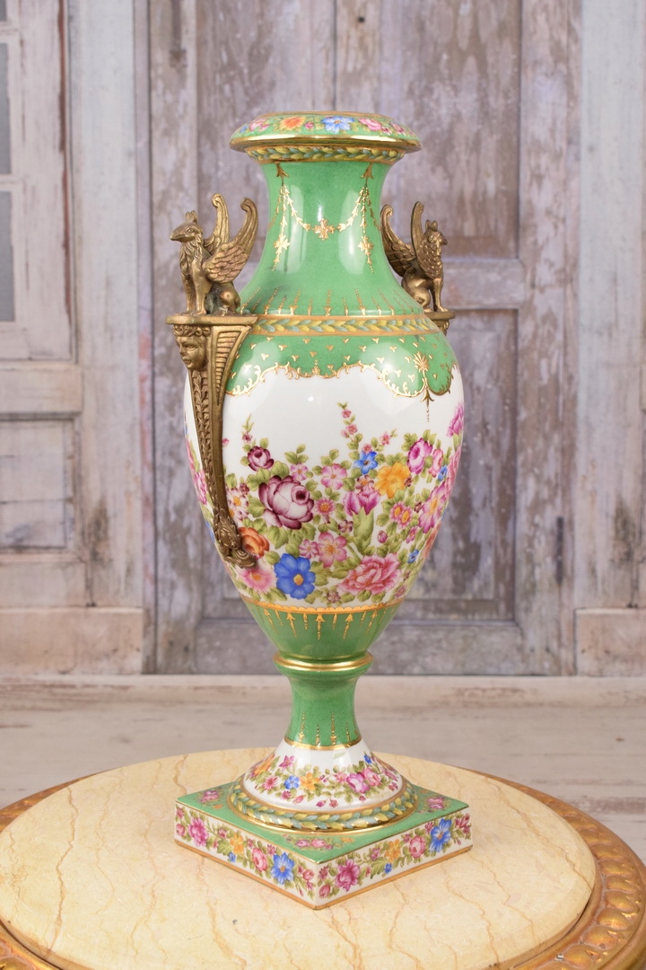 Фарфоровая ваза - зеленая ваза - фарфоровая + бронза - сфинксы