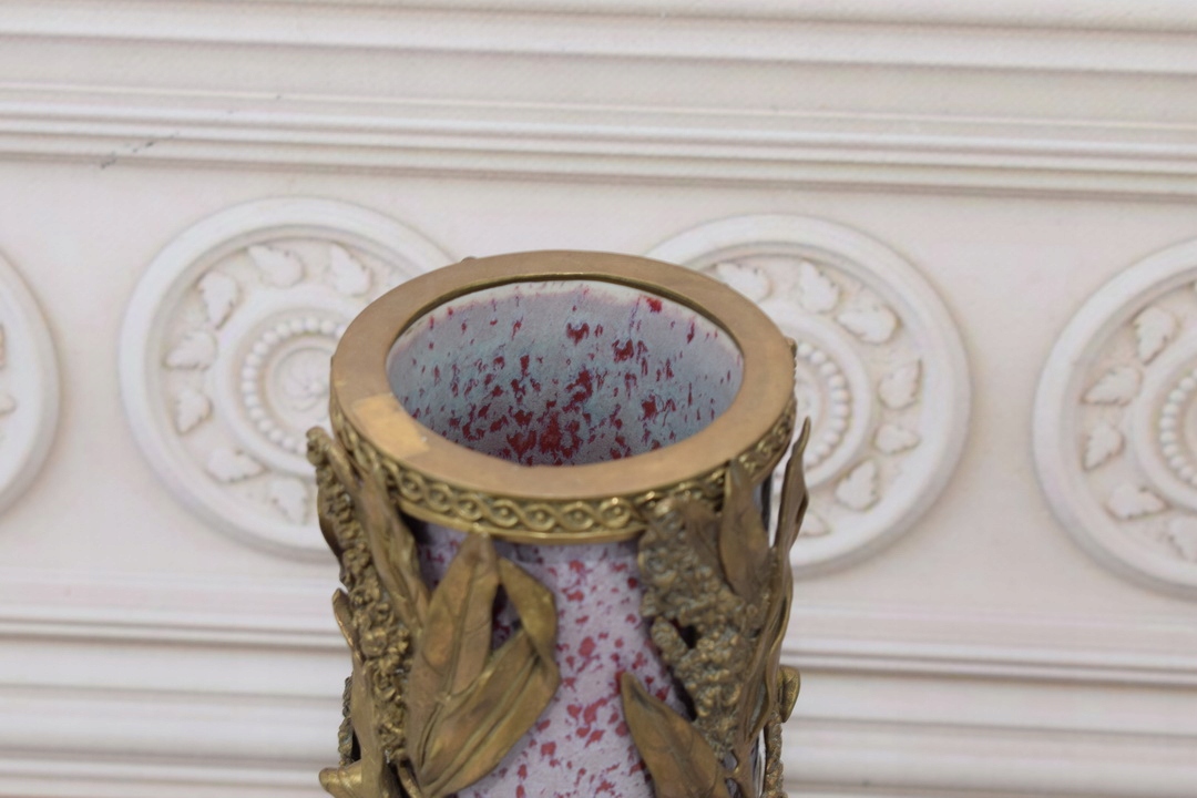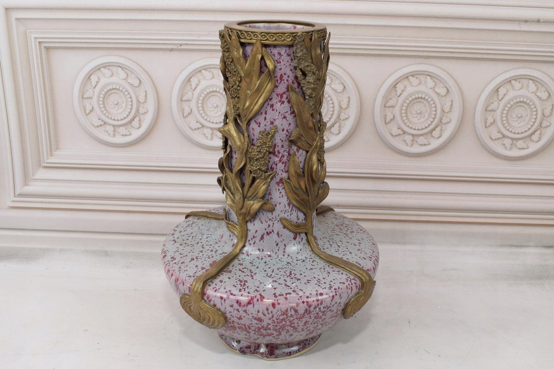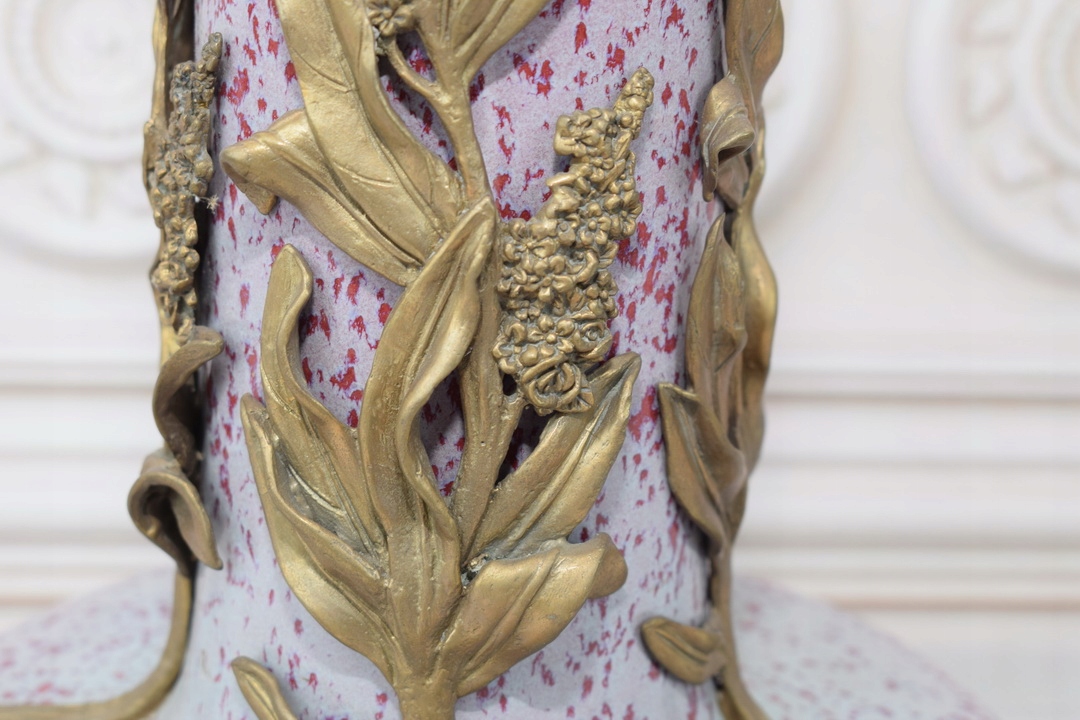 Фарфоровая ваза для цветов - белый и розовый - фарфор + бронза - вывеска