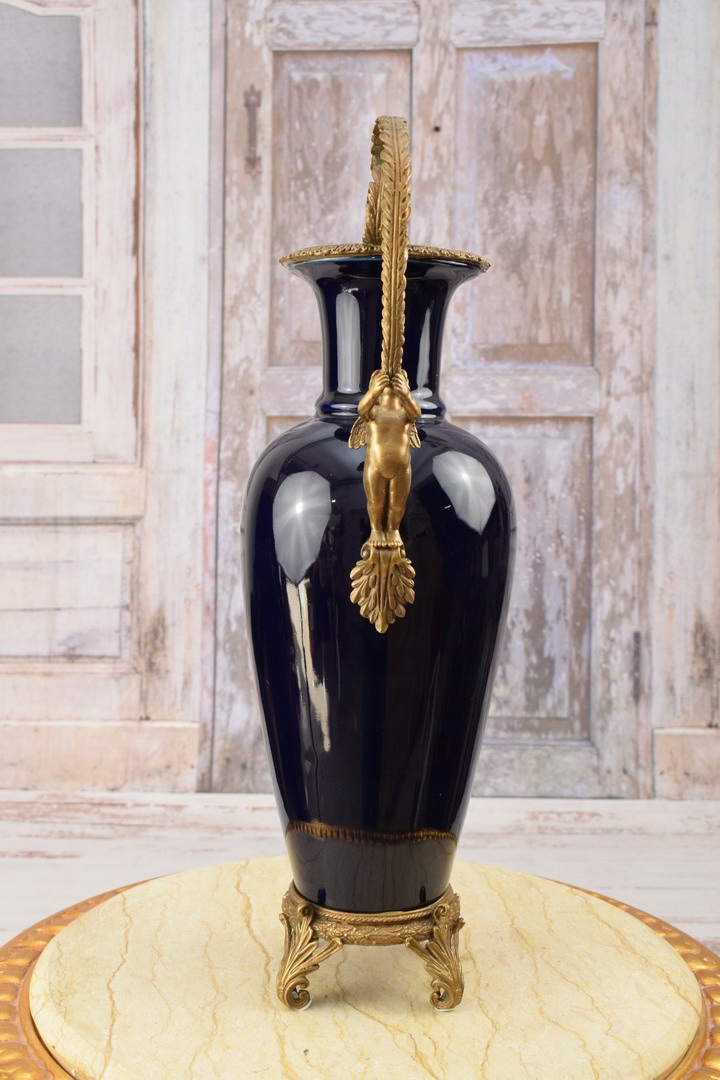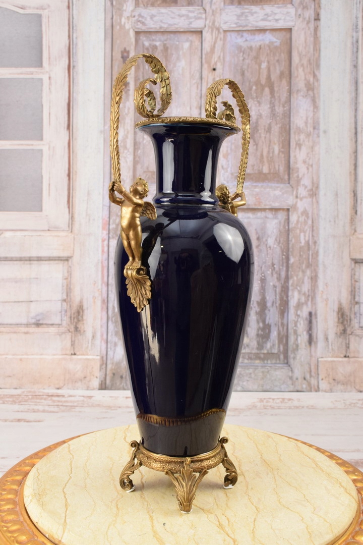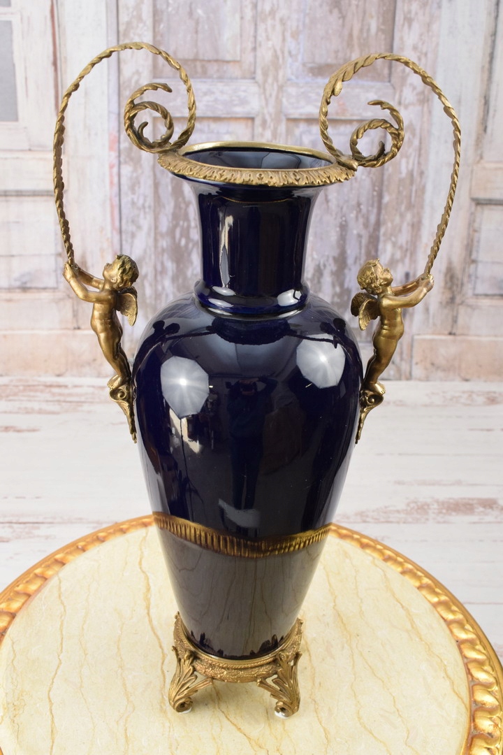 Порцелянова ваза з ангелами-амурами кобальтового кольору + бронза - весільний подарунок - Франція