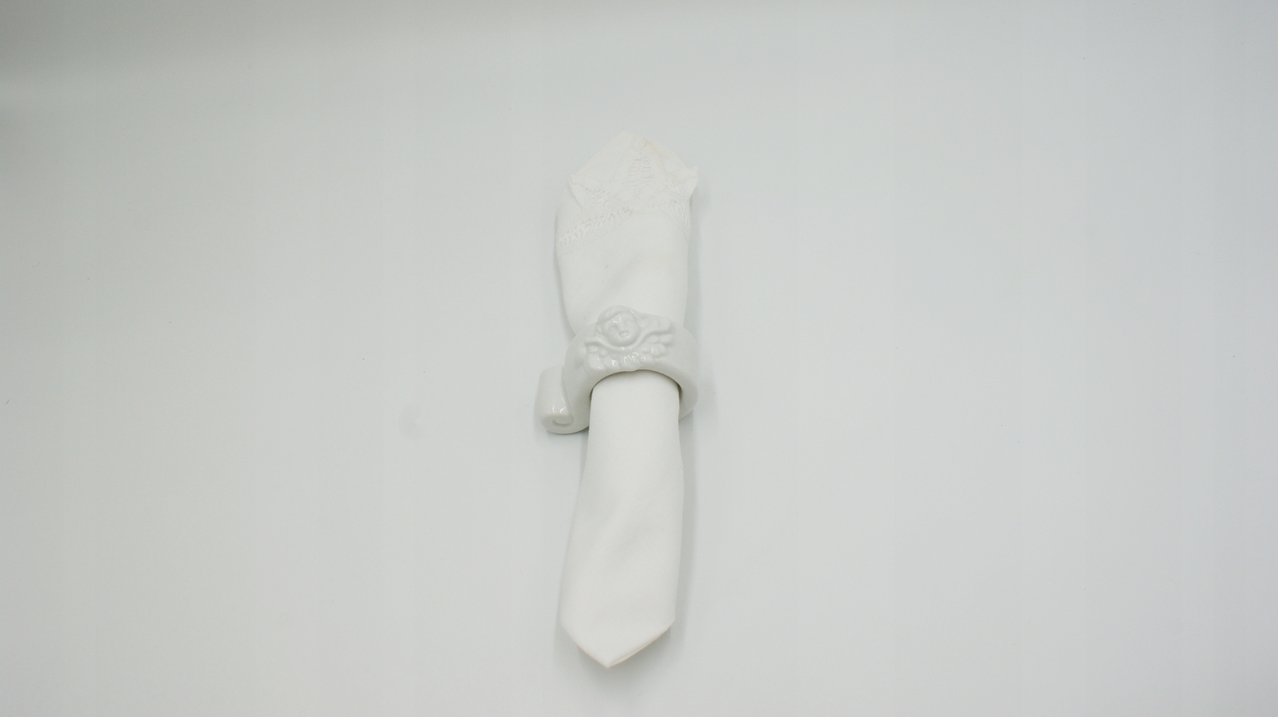Белая фарфоровая салфетница с мотивом ангела отлично смотрится на столе.