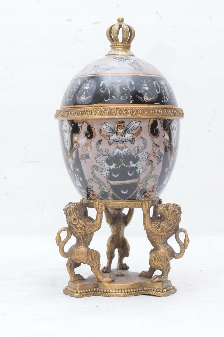 ПОРЦЕЛЯНОВЕ ЯЙЦЕ ЯЙЦЕ ЛЕВА в розписі під бронзу