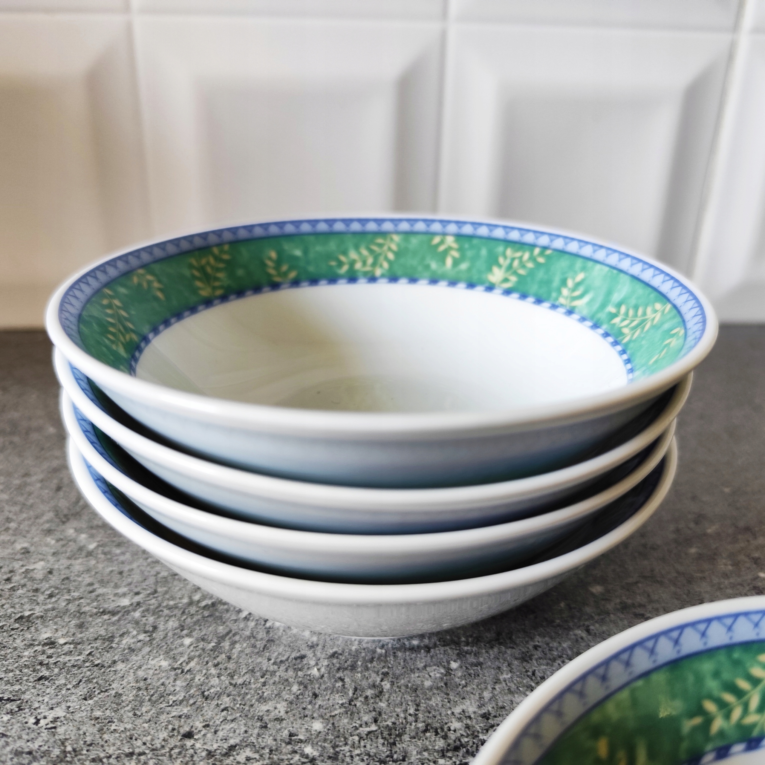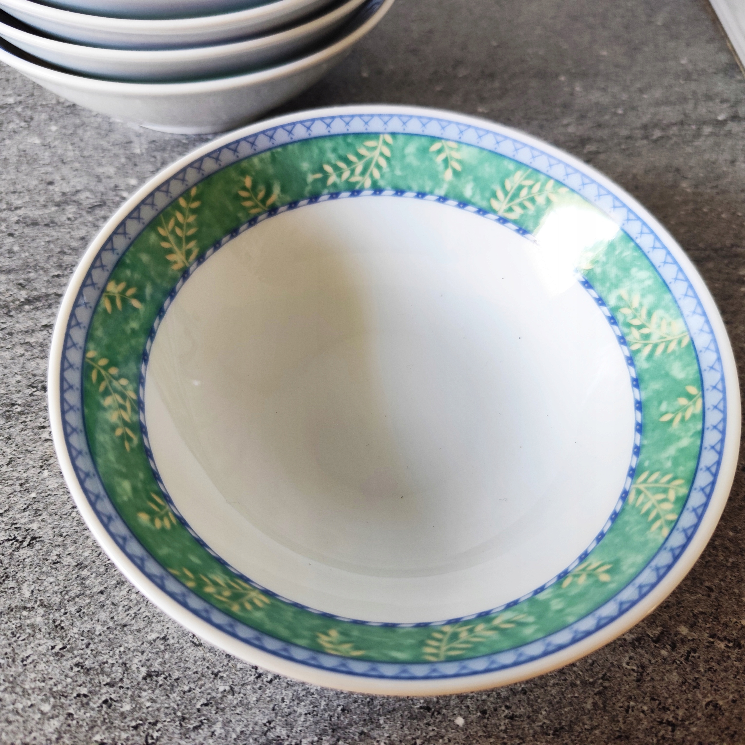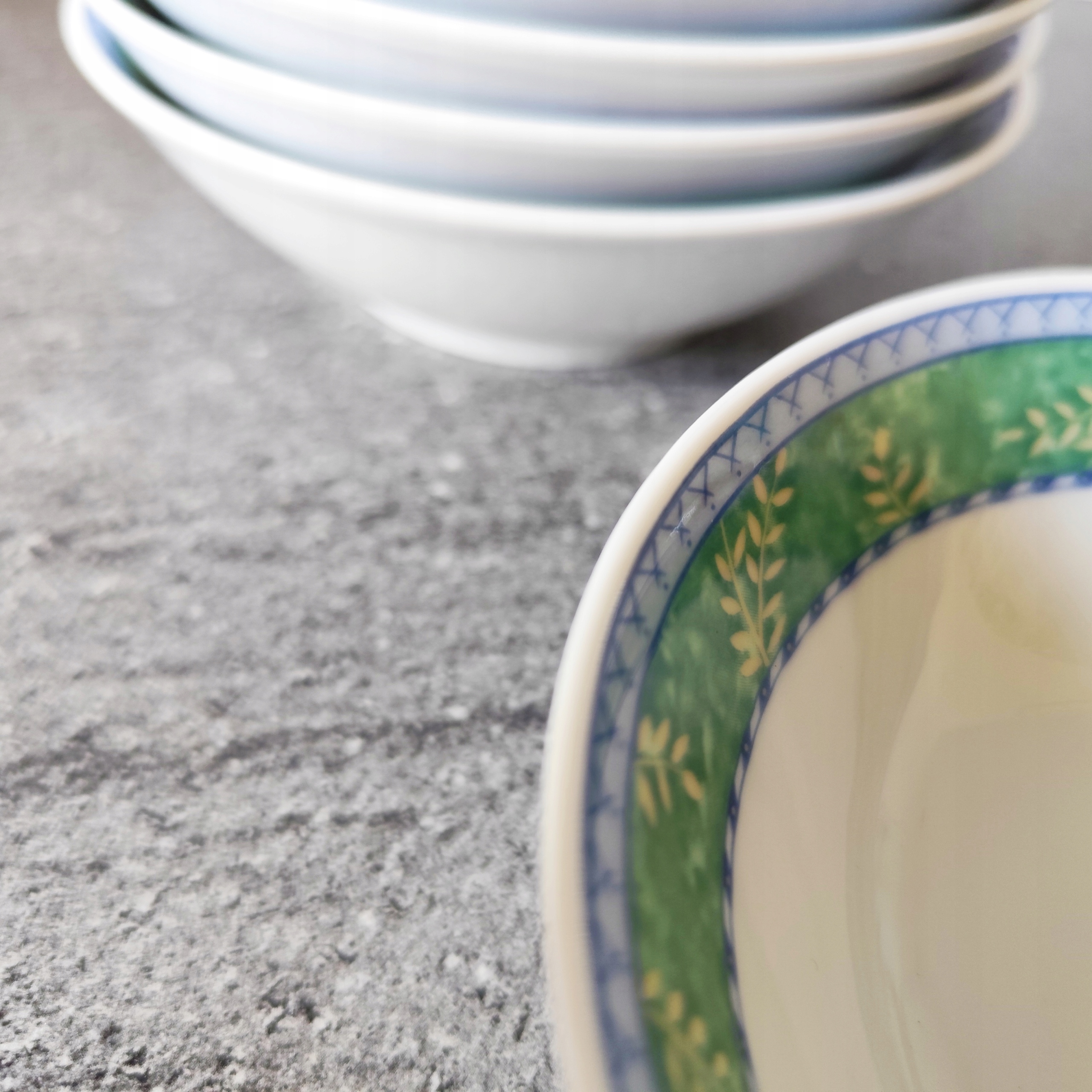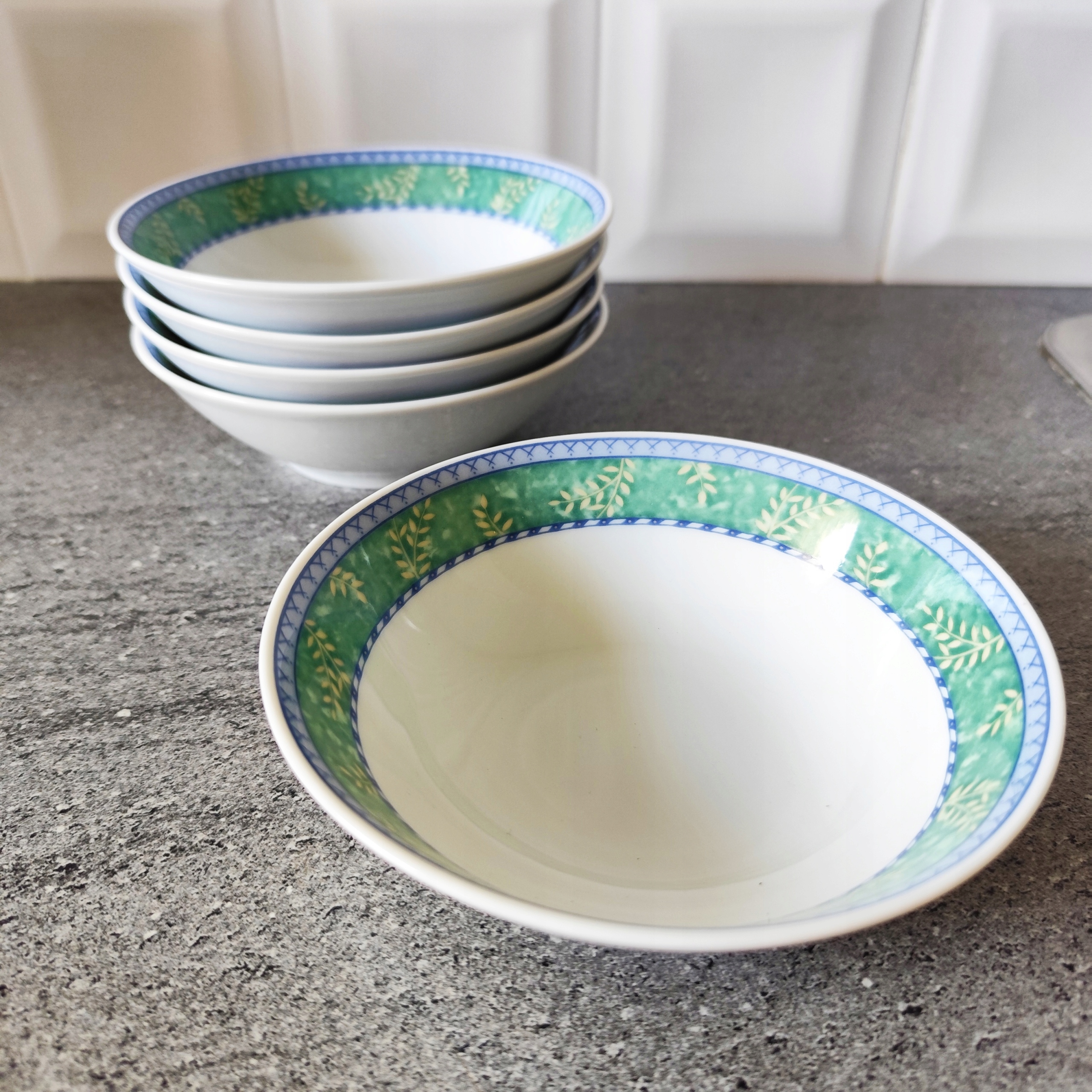 Фарфоровые чашки установили 5 штук. Хороший рисунок подписан