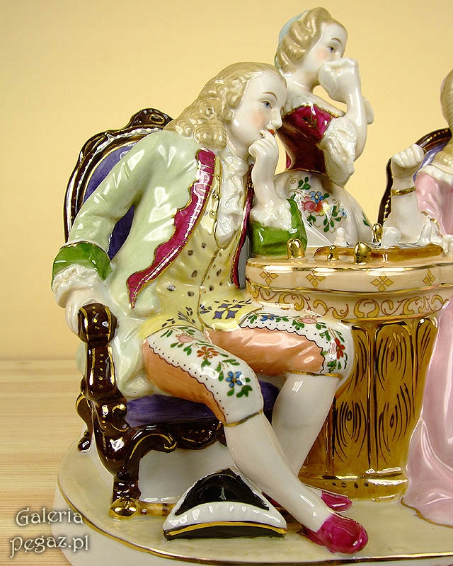 Порцелянові фігурки дворянства "Гра в шахи" Підписана порцеляна