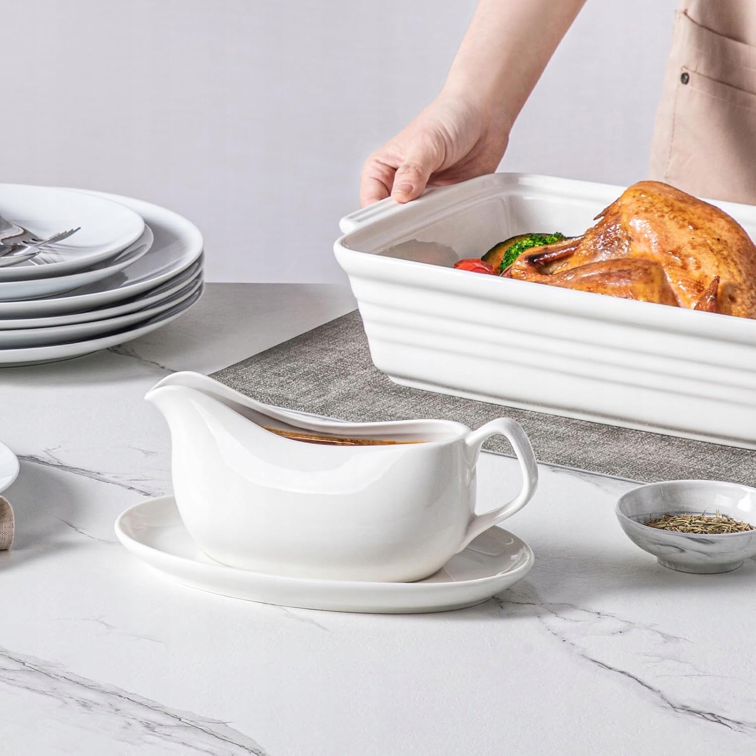 ✅ Элегантность фарфора - Классический белый фарфор подходит для каждой посуды и добавляет очарование к вашей таблице