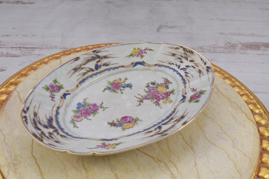Порцеляновий блюдо з квітами – красиві розписи – фрукти – подарунковий знак.