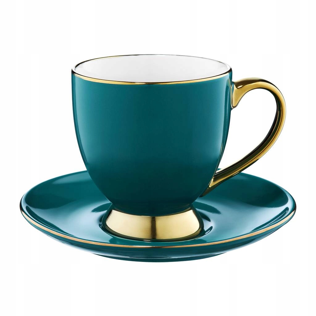 ФАРФОРОВАЯ ЧАШКА С ЗОЛОТЫМ БИРЮЗОВЫМ БЛЮДЦЕМ