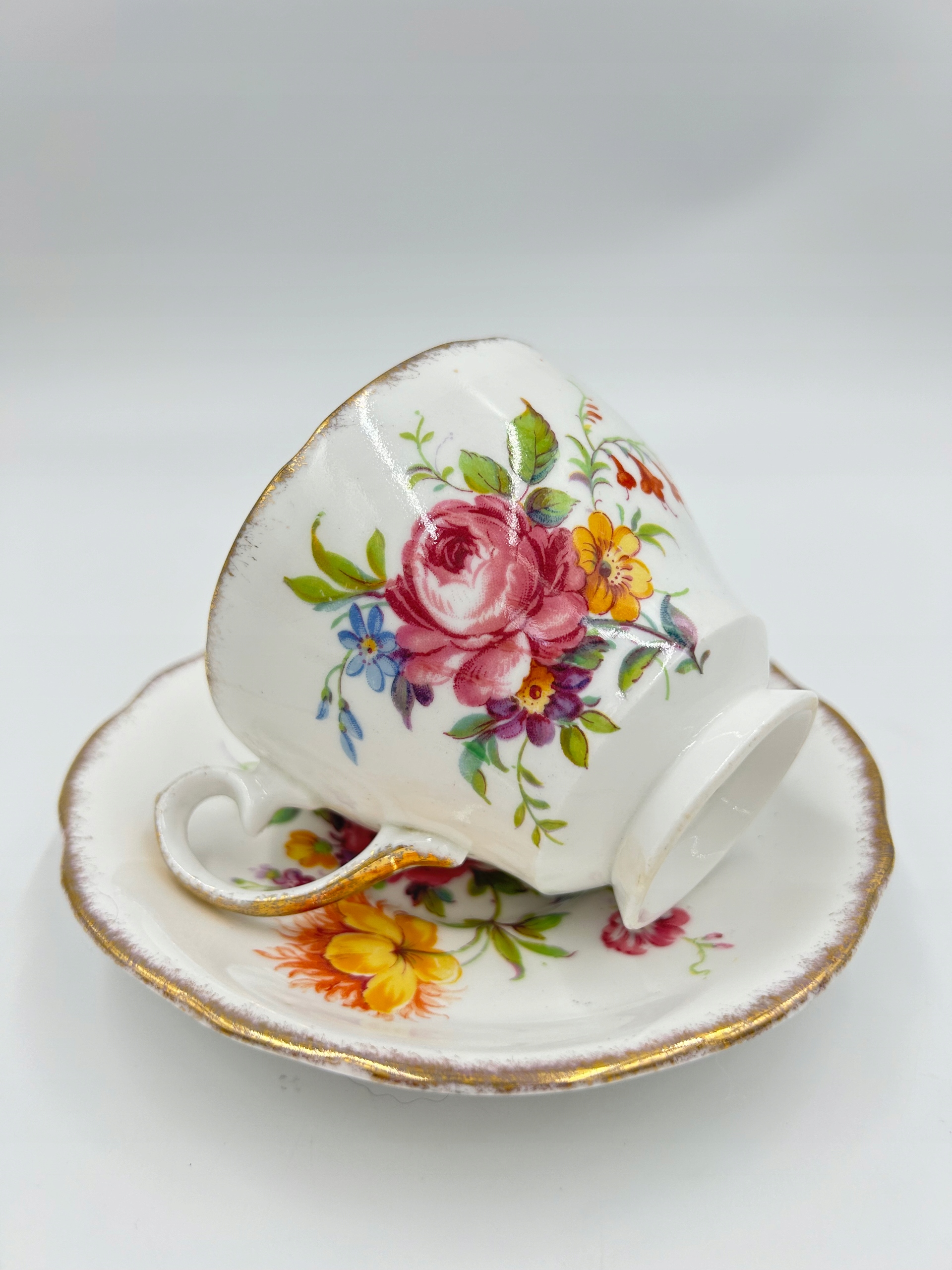 Богатый цветочный декор, позолоченные края и изящная форма чашки с позолоченной ручкой придают ей утонченность и элегантность. Утренний кофе в такой чашке станет предвестником чудесного дня.