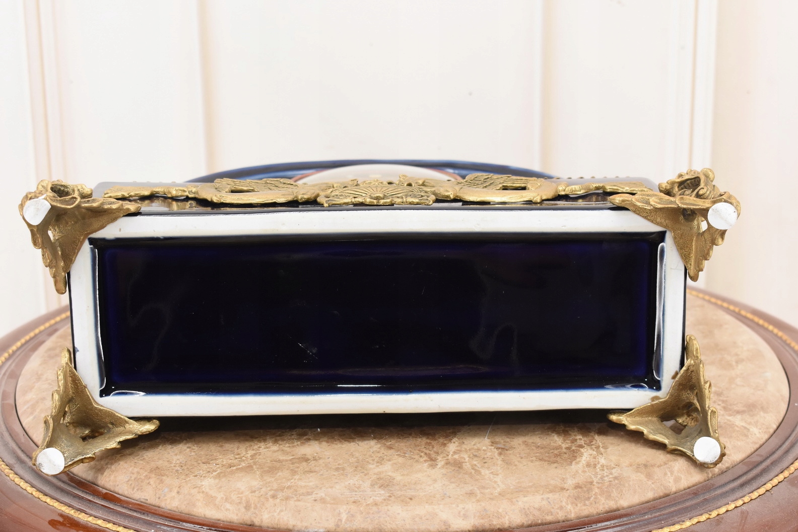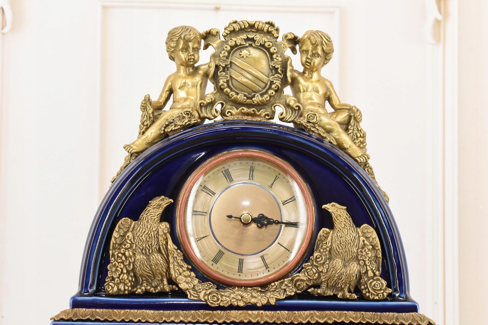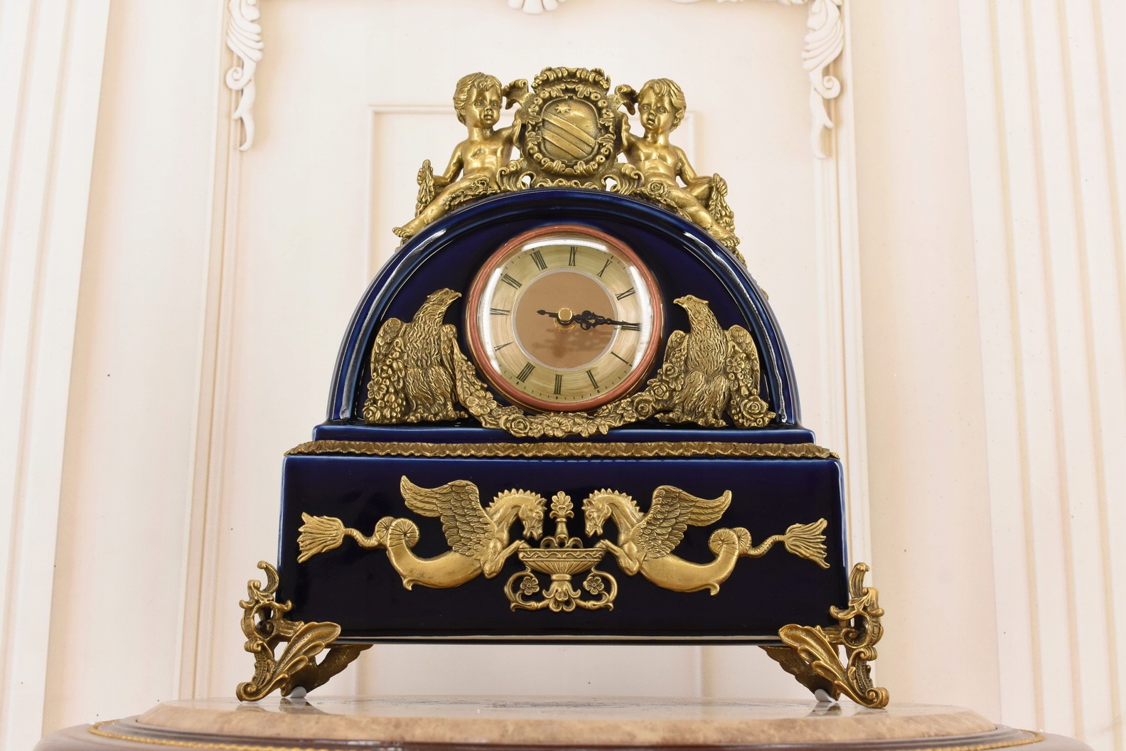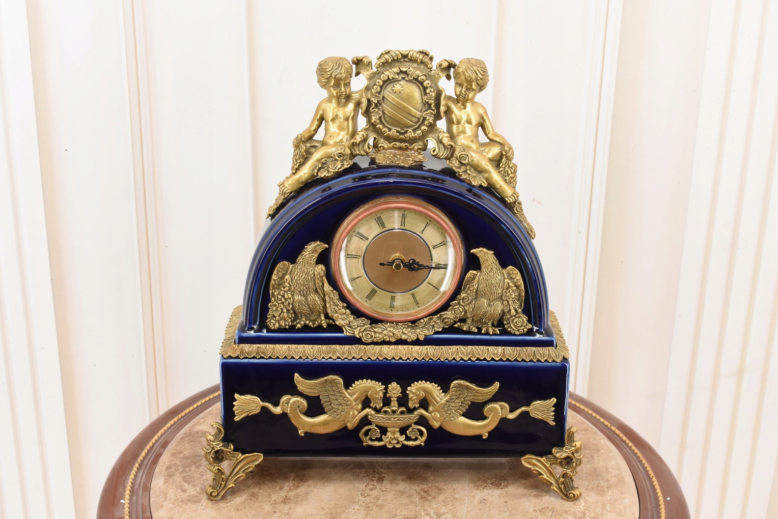 Кобальтовые фарфоровые часы - богато украшенные - фарфор + камин коричневый
