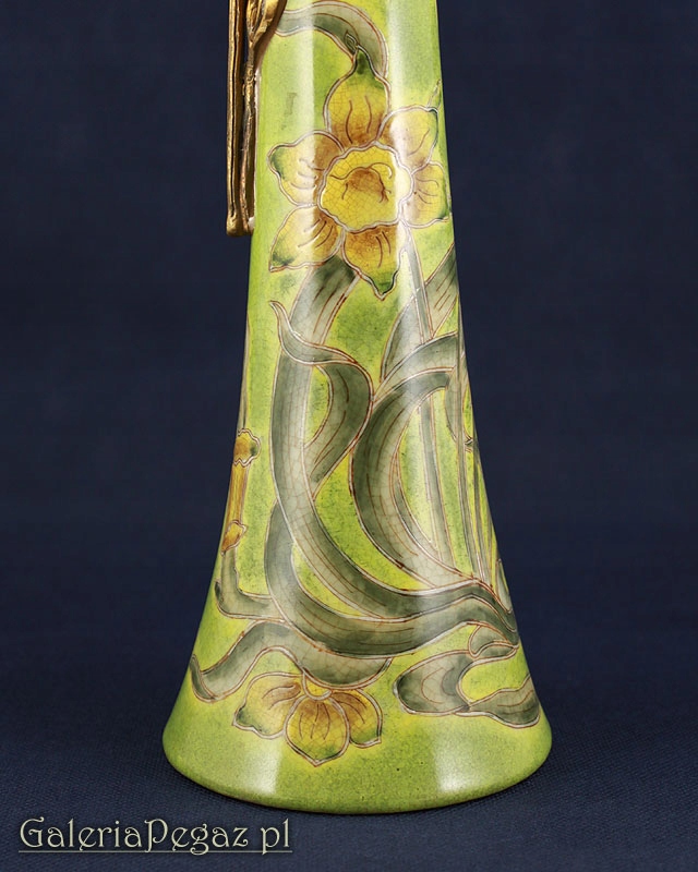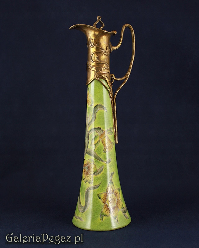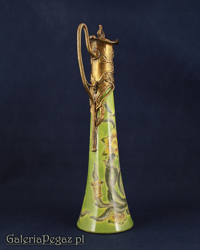 Верхняя часть сосуда имеет удобную ручку и пробку из непатинированной бронзы.