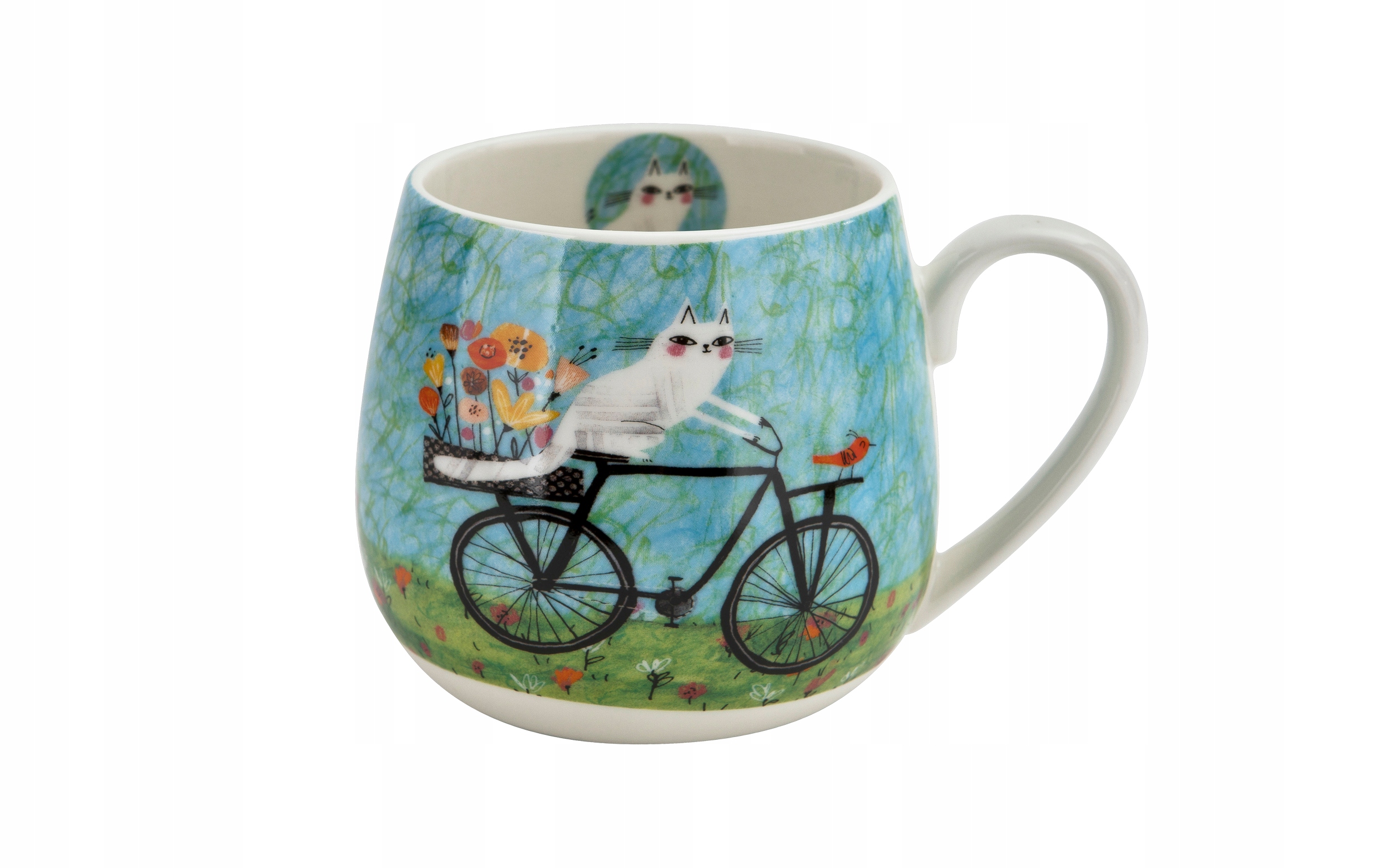 Уникальная кружка с производителем 430 мл, украшенная белым мотивом велосипедной кошки.