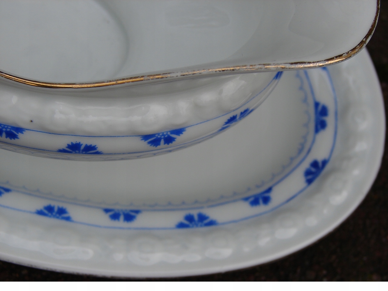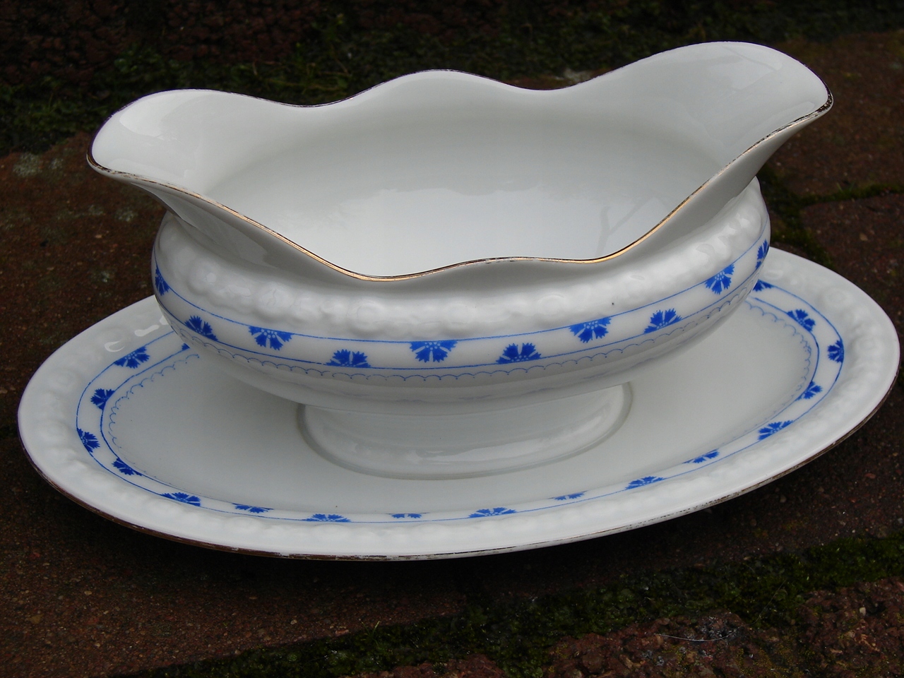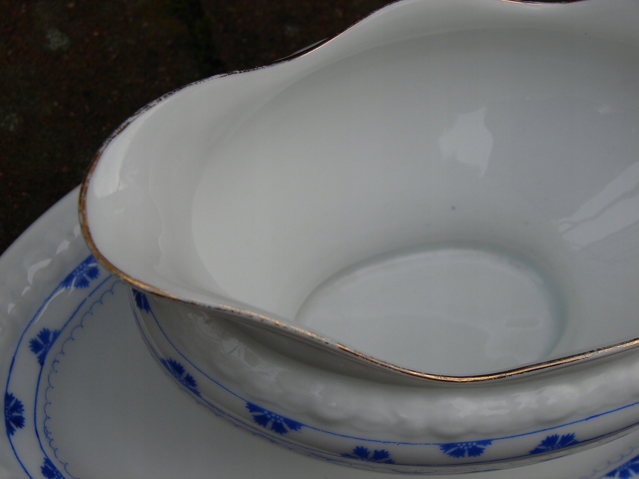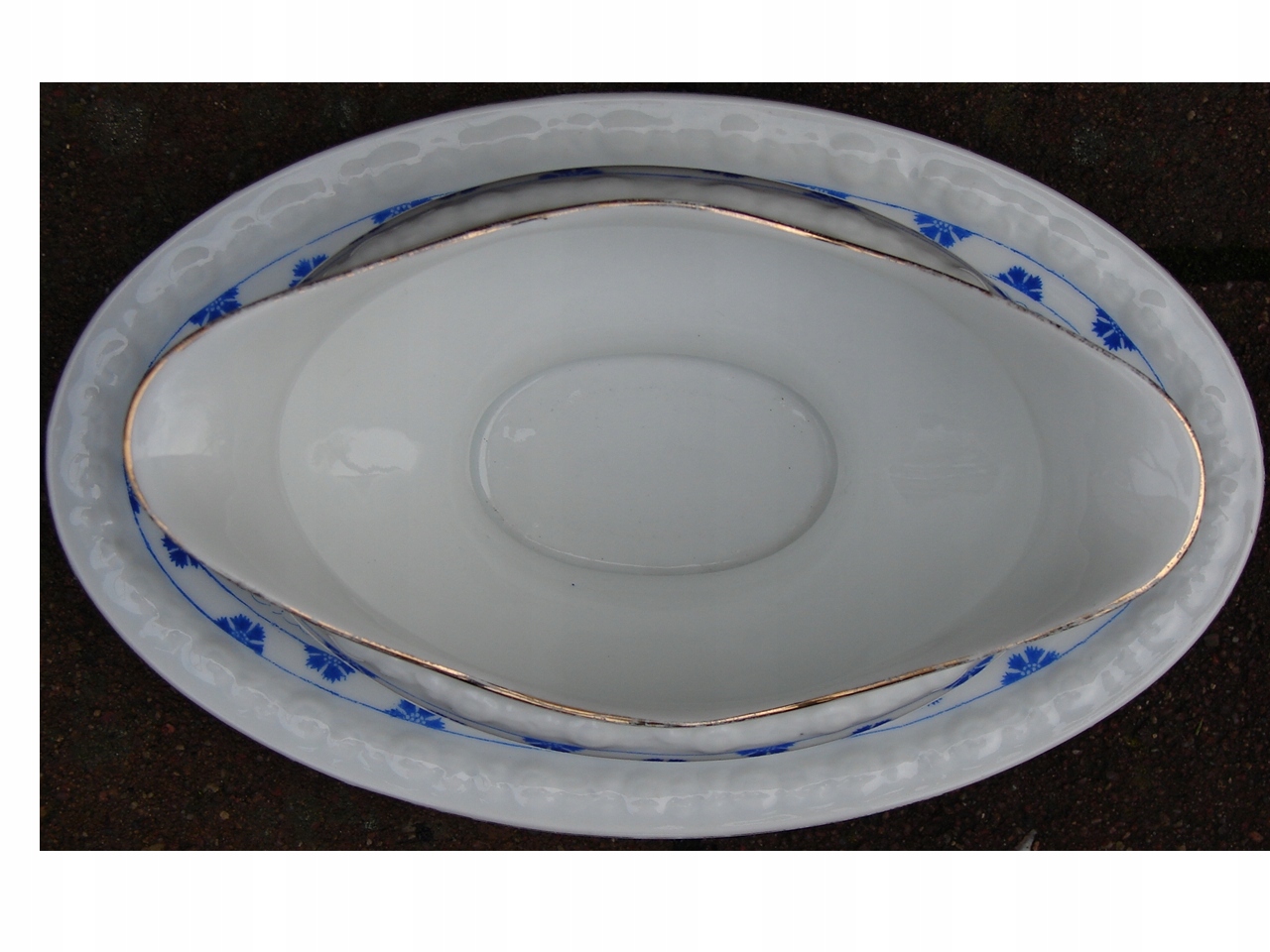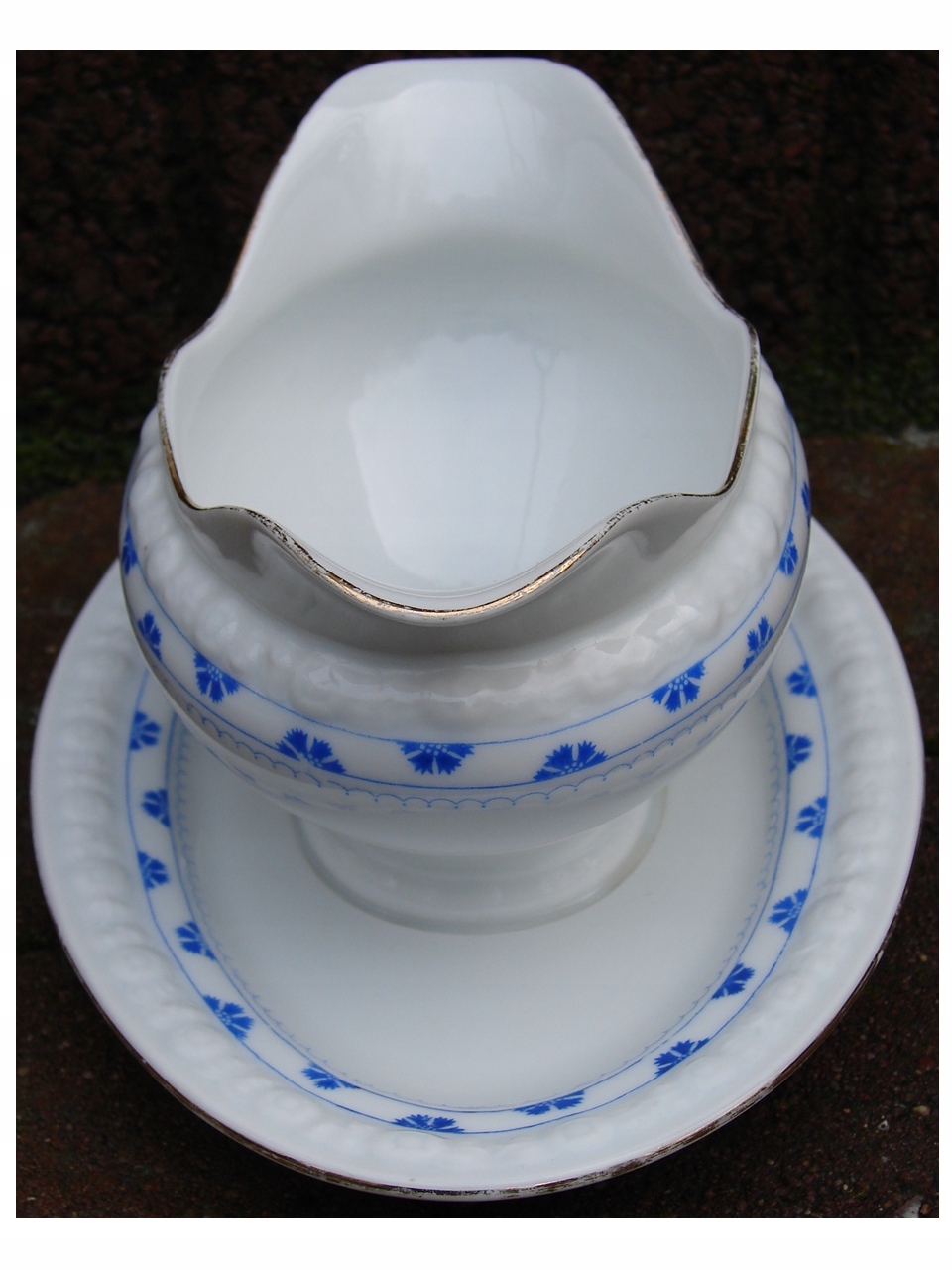 Старая фарфоровая соусница для подачи соусов.