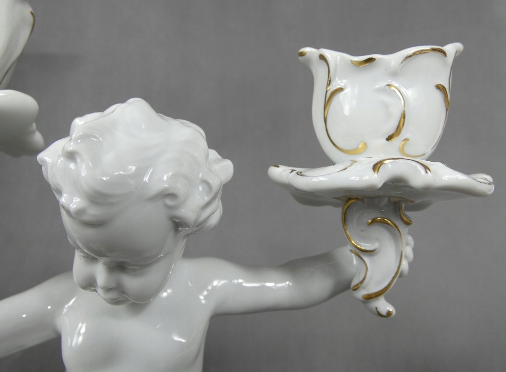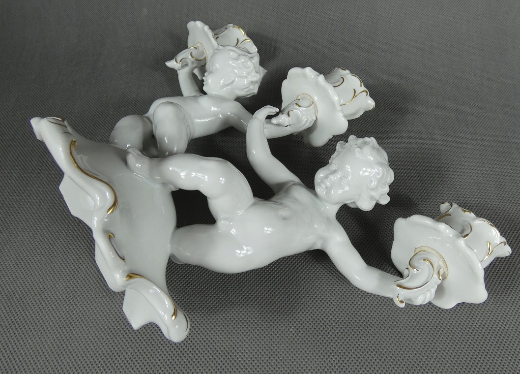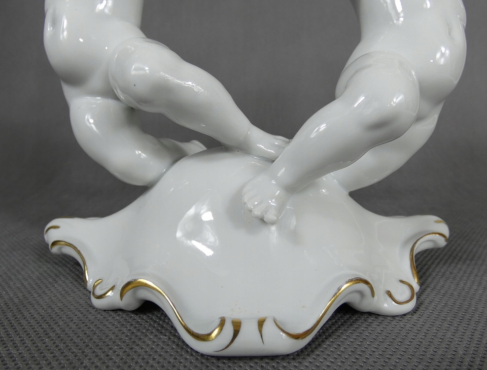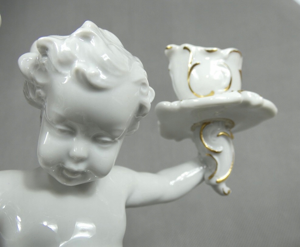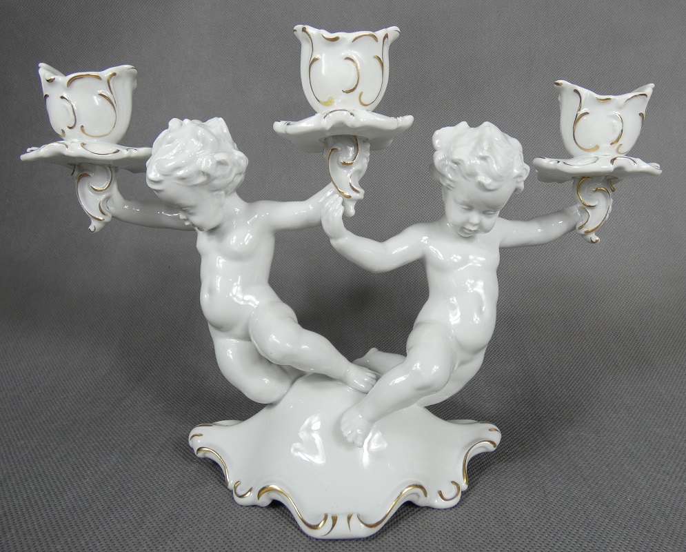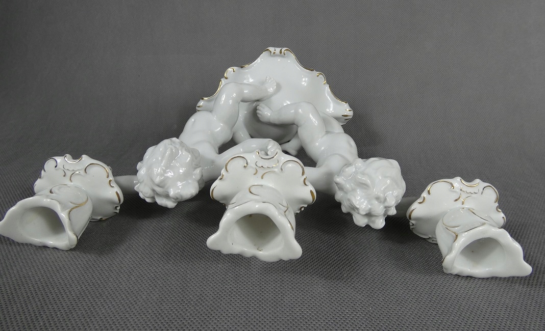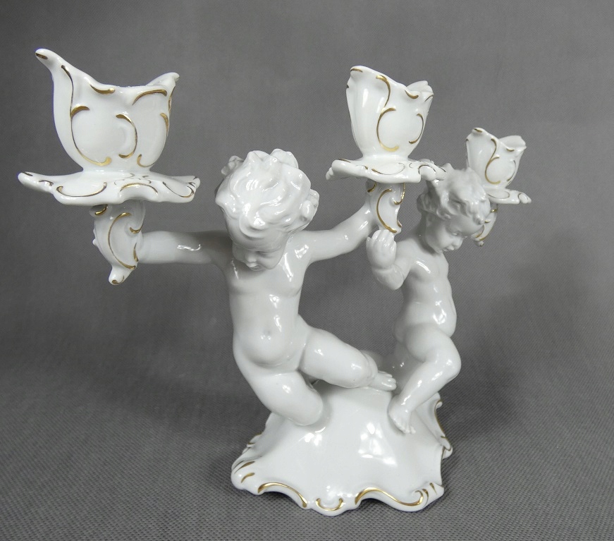 Предмет моего аукциона — оригинальный фарфоровый подсвечник в стиле рококо с парой чашек путто. p>