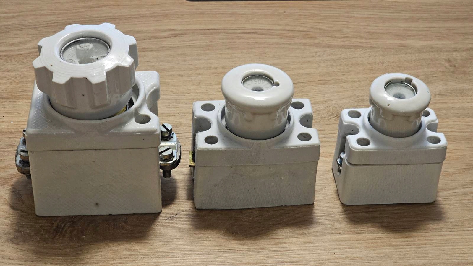 У меня есть фарфоровые головки с предохранителями и фарфоровые основания на 100А, 63А, 25А. Если вас интересует калибровка вставок, напишите нам. Посмотрите другие мои аукционы.