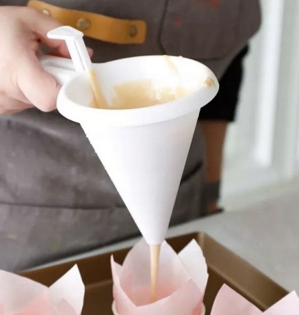 Воронка имеет широкий спектр применения, ее также можно использовать для дозирования теста для вафель или блинов.